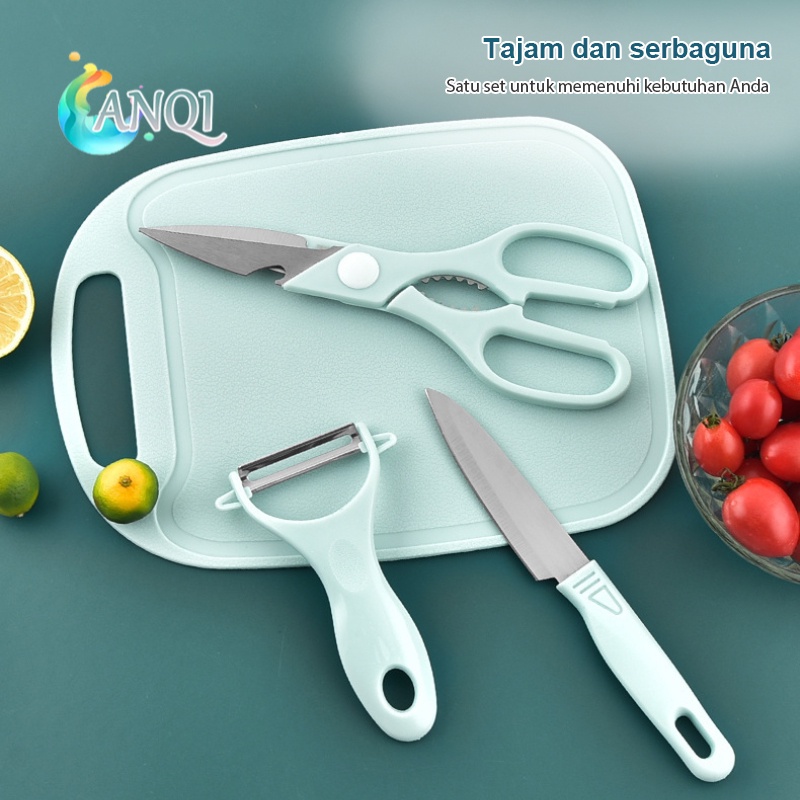 ANQI SHOP 4PCS PISAU SET Pisau Stainless Talenan Set Knife Pisau Buah - ANTI KARAT - SUPER TAJAM VS