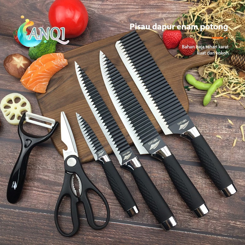 ANQI SHOP Pisau Dapur Hitam Set Isi 6pcs Black Knife Set VS-1813