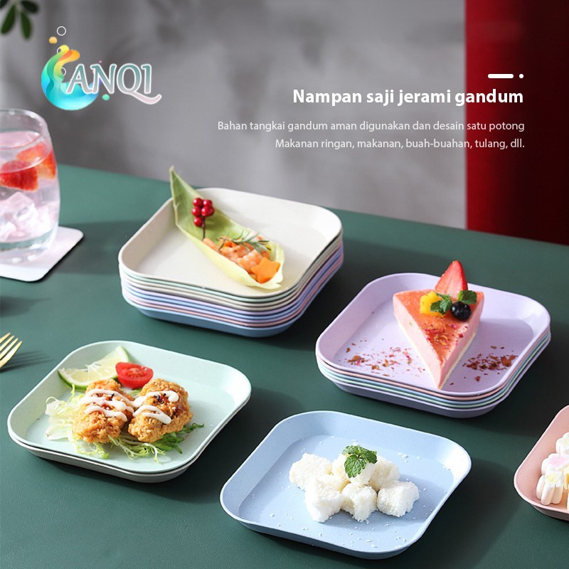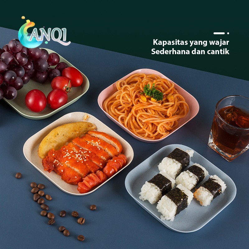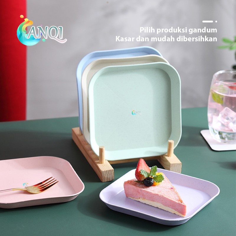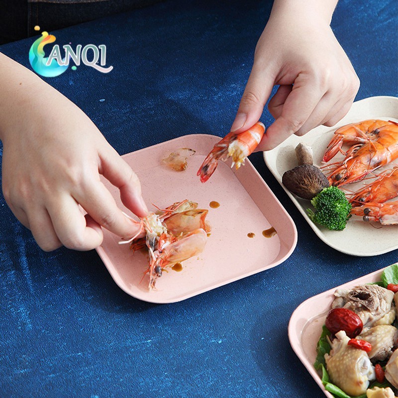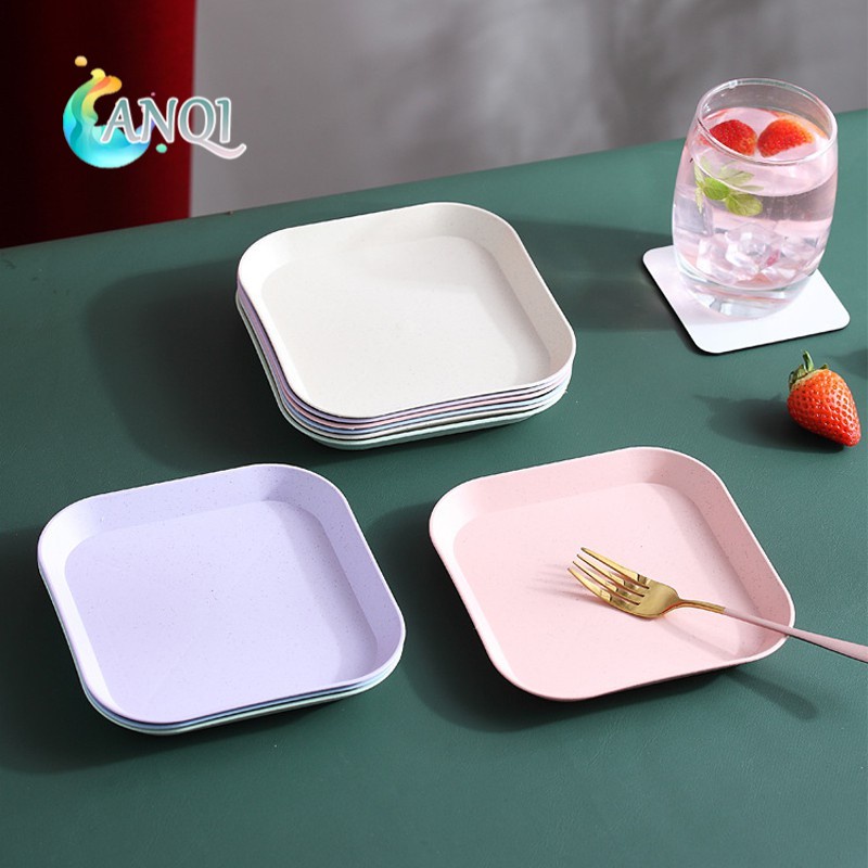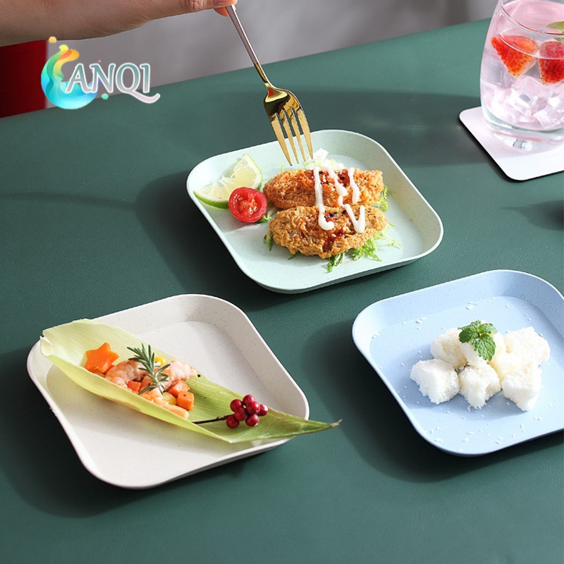 ANQI SHOP Piring Warna Warni Dinner Plate Plastic Kotak Bahan Jerami