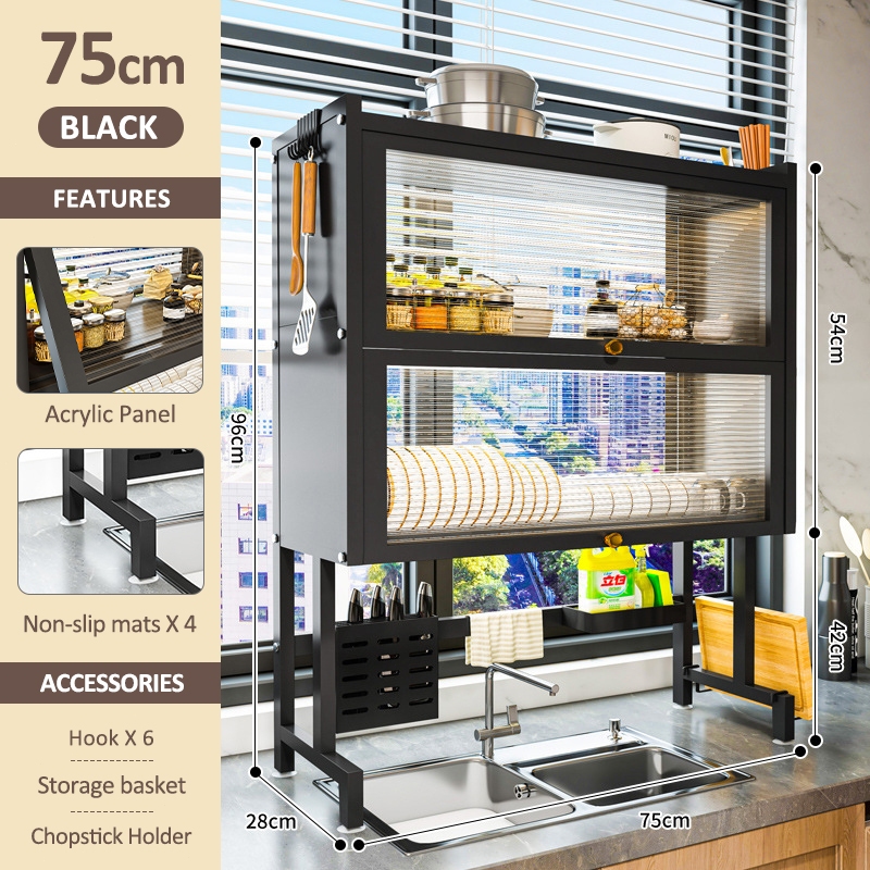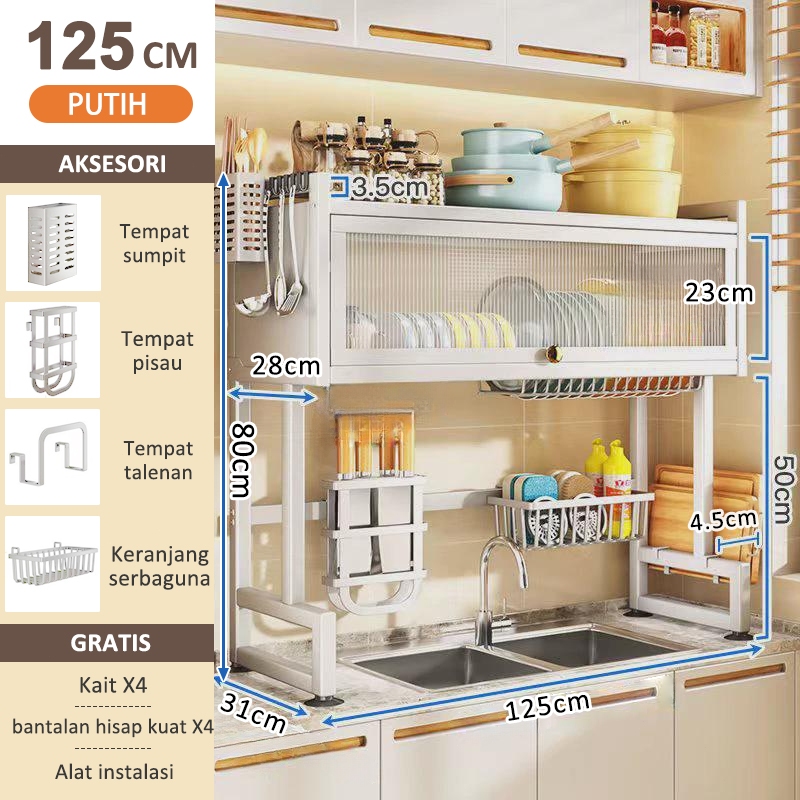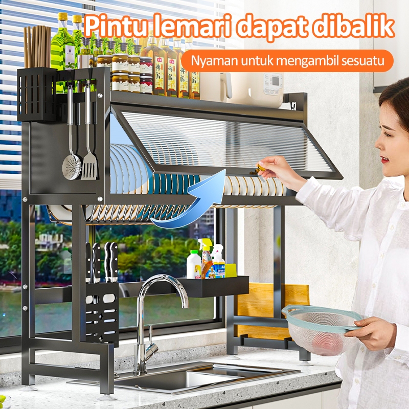 iSPECLE Rak Piring Tertutup Rak Piring Wastafel Dengan Penutup Multi-fungsi Rak Dapur Rak Piring Kabinet Rak Penyimpanan Piring Anti Serangga Dan Debu