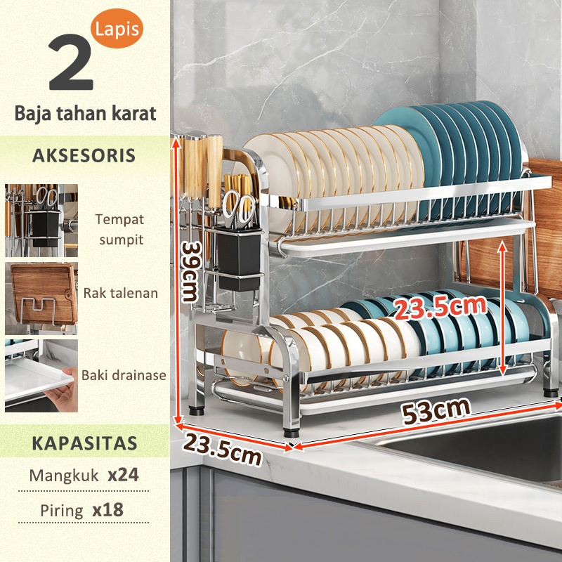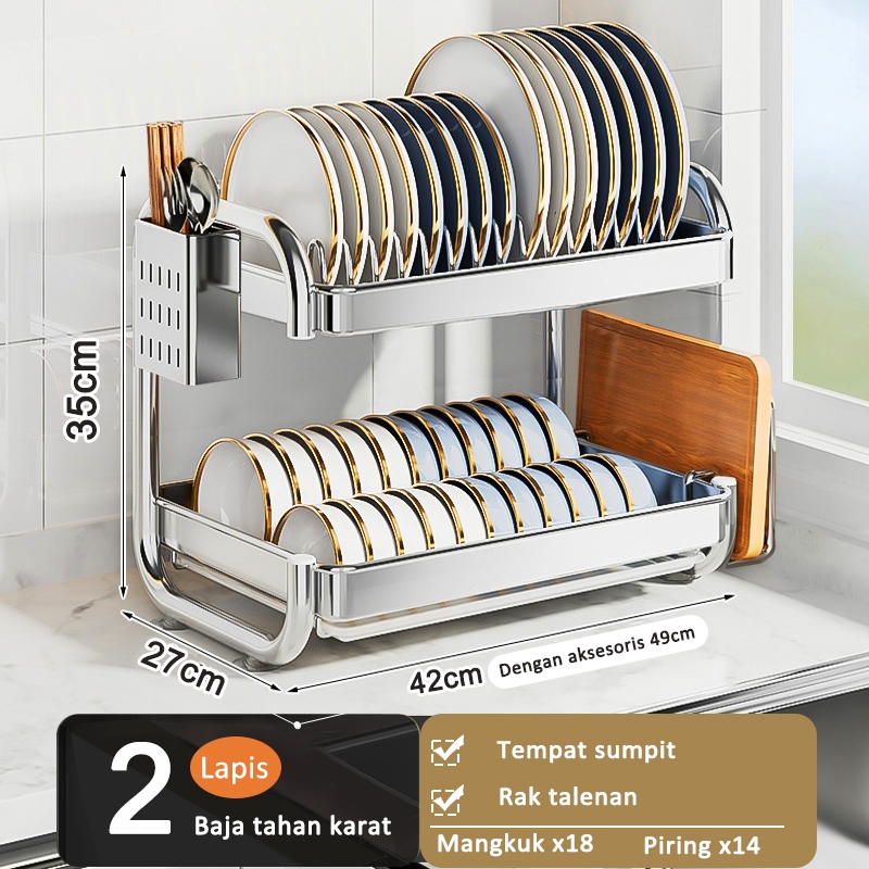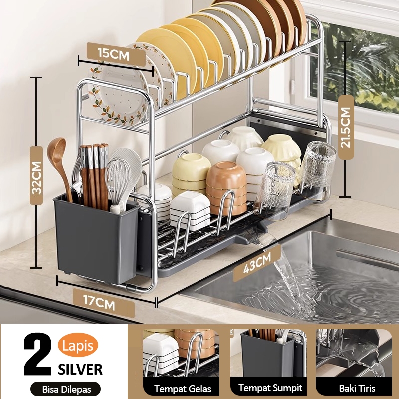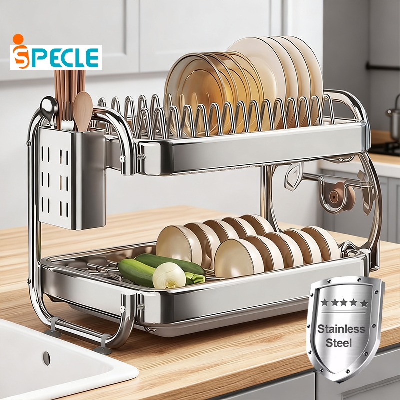 iSPECLE 304 Rak Piring Stainless Rak Dapur Rak Piring Wastafel Tempat Piring Dengan Baki Pembuangan Yang Bisa Ditarik Keluar