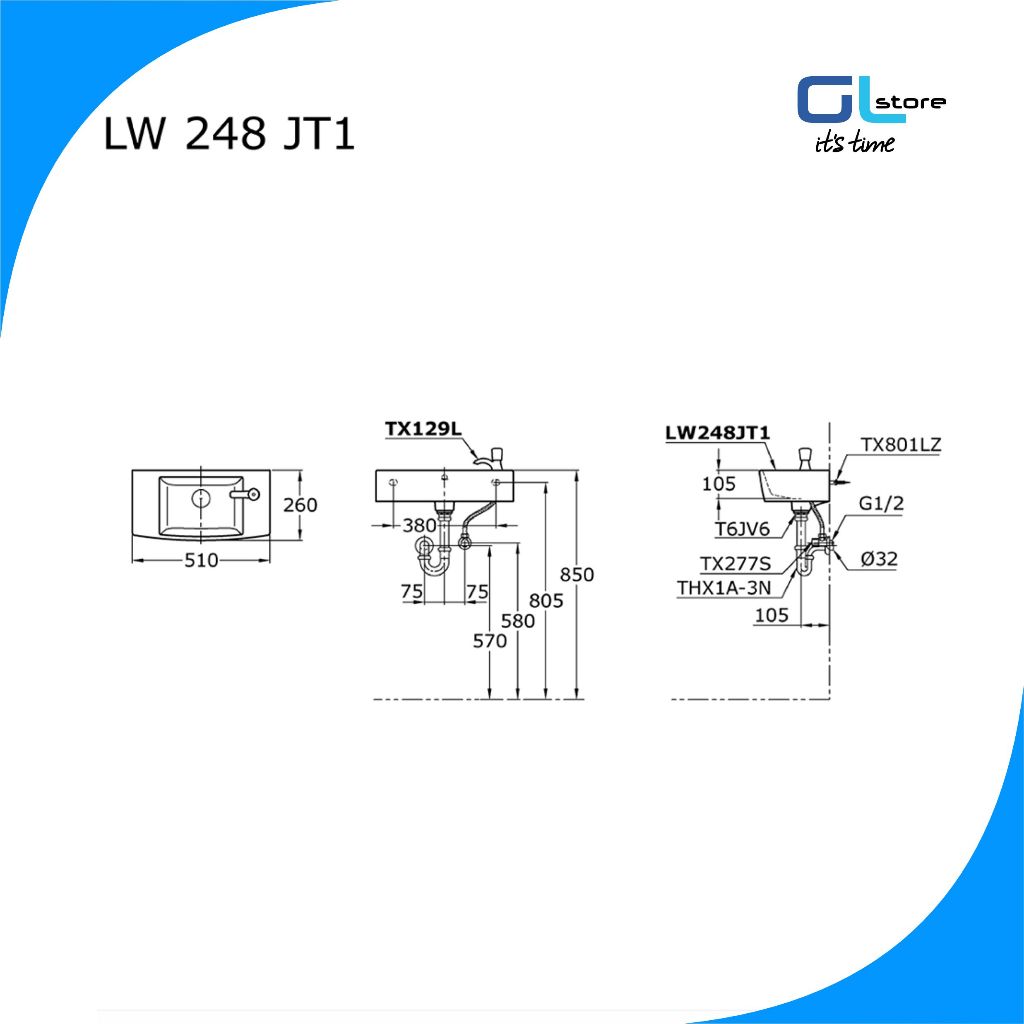GLS - Wastafel Kotak - Wastafel Gantung - Wastafel TOTO LW 248 JT1 Only
