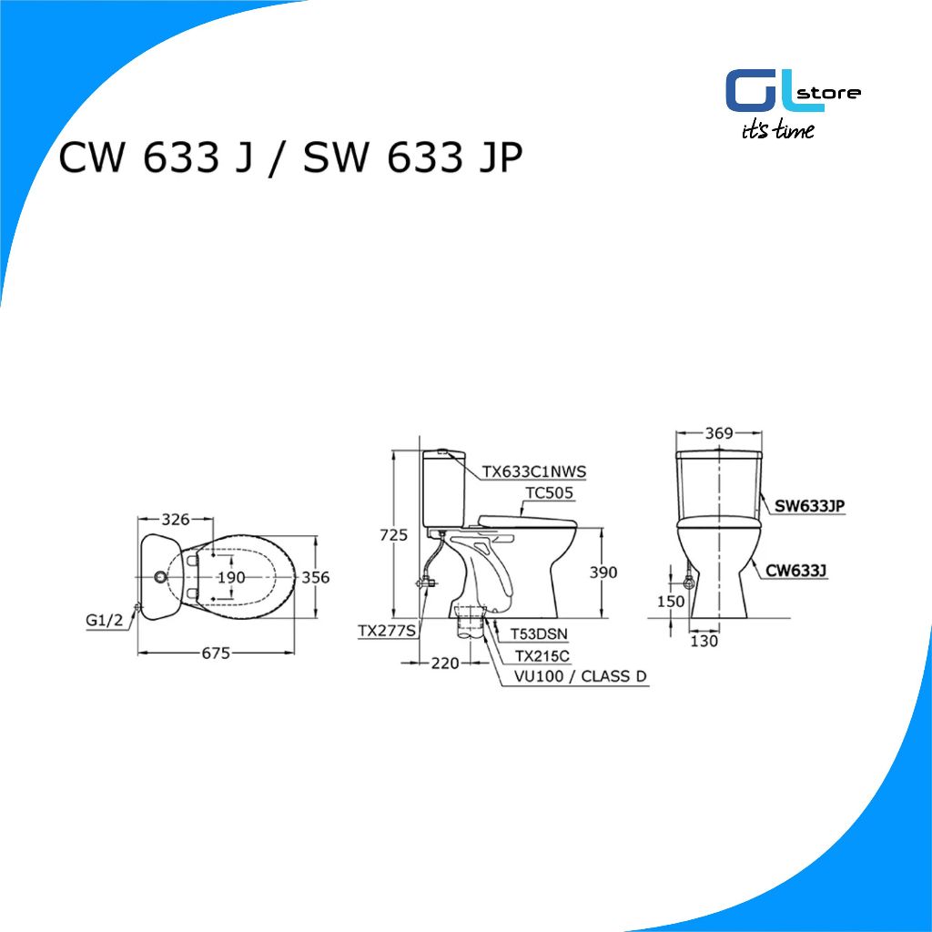 GLS - TOTO Kloset Duduk CW633 Single Flush Putih As 22 Closet Toilet Modern Two Piece CC CW 633 SW633JP