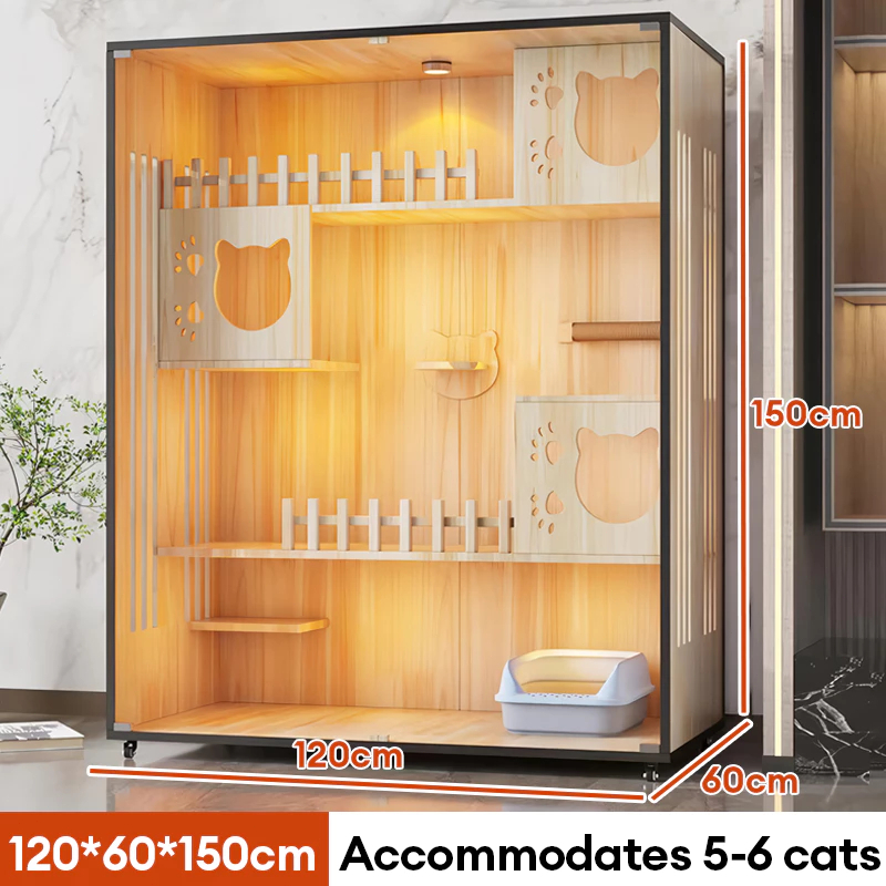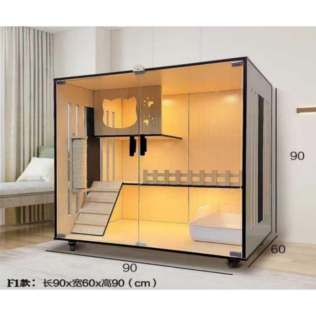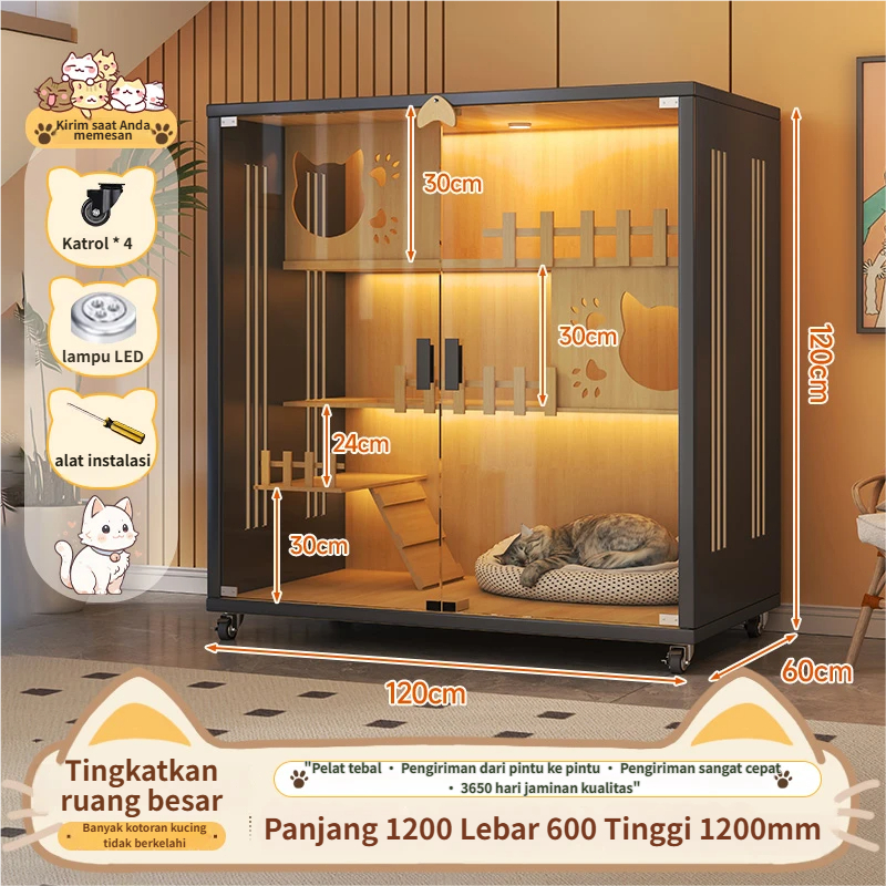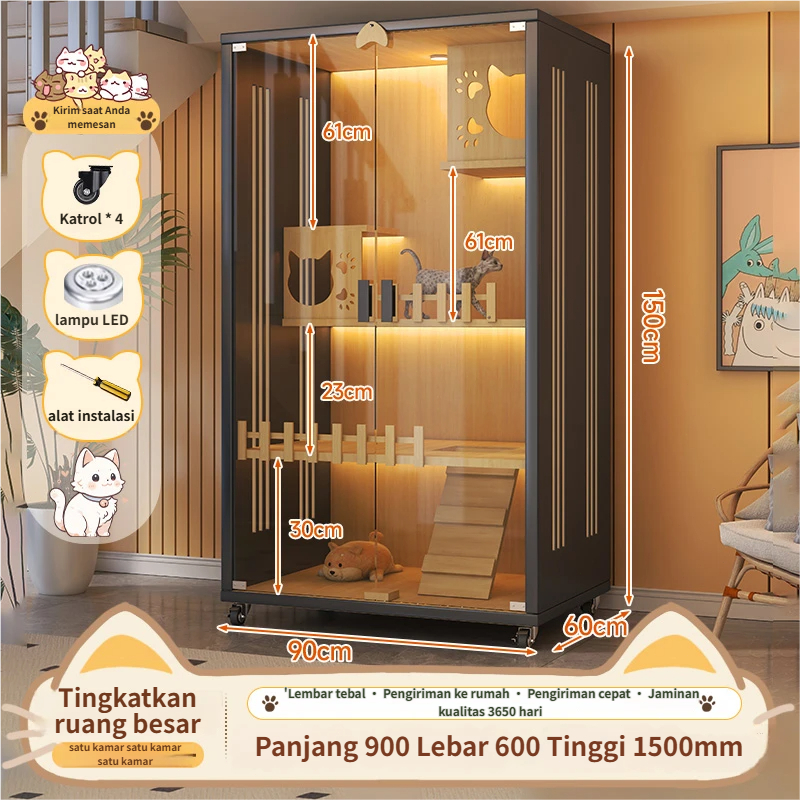 GREENPETS Kandang rumah kucing tahan gores rumah kucing kayu rumah kucing vila kandang kucing
