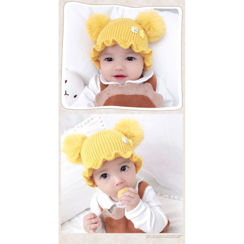 【TOKO1234.】1KG 17PCS TOPI RAJUT BUCKET UNISEX/ BAHAN WOL LEMBUT HIASAN POMPOM /KUPLUK HANGAT.