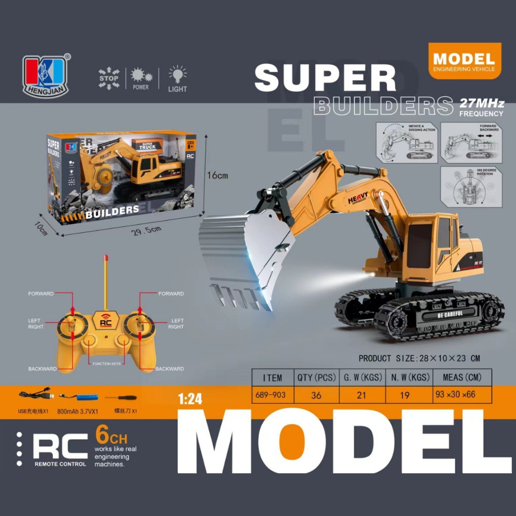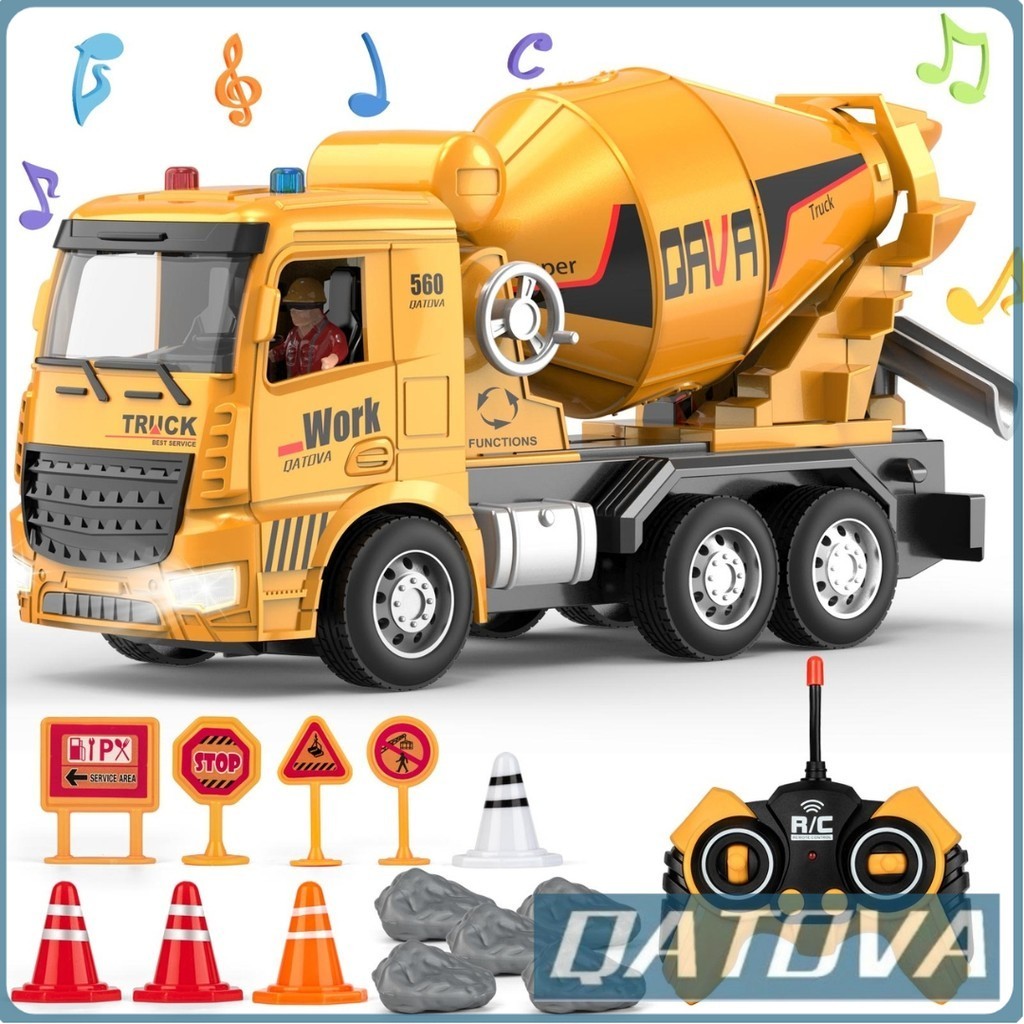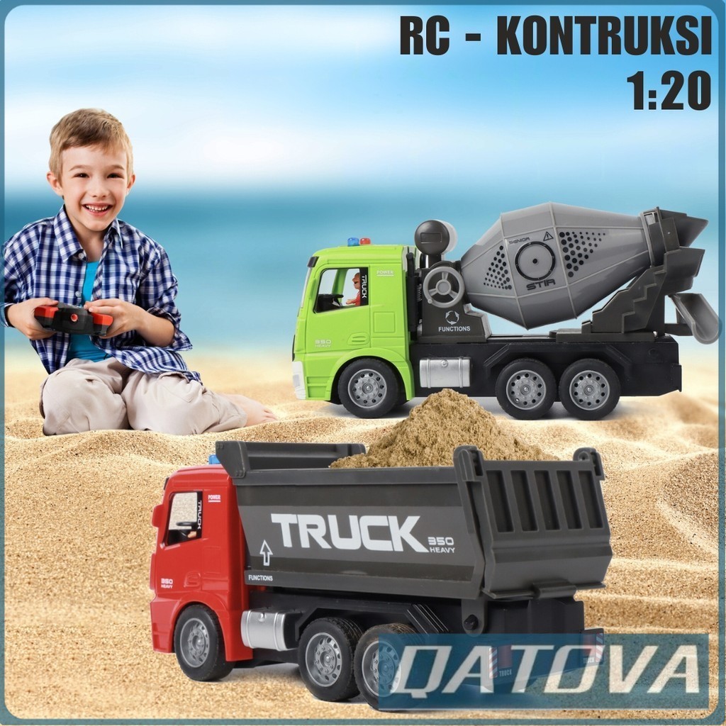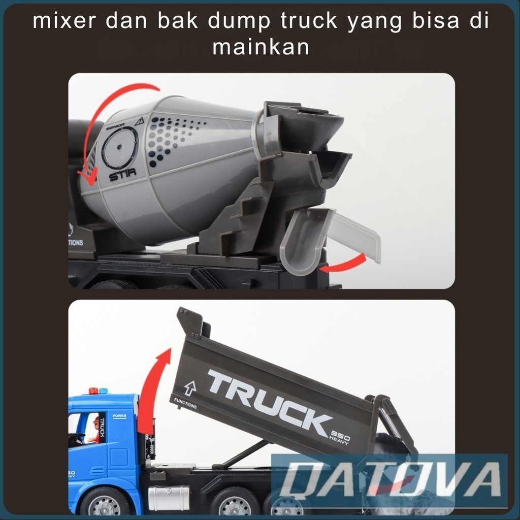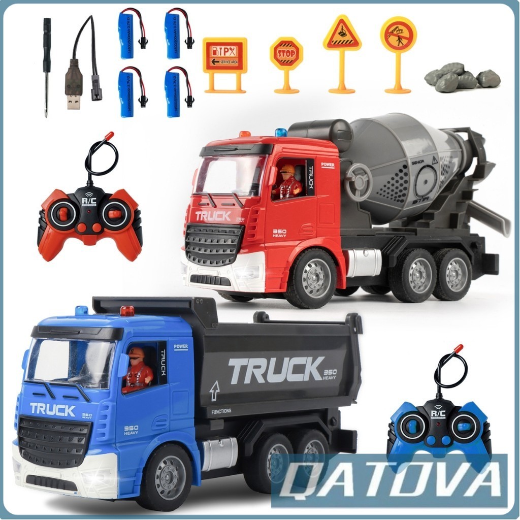 QATOVA Mainan Remote Control 6 Channel Dump Truck Excavator Truk Molen Rc Kontruksi Mixer 2in1