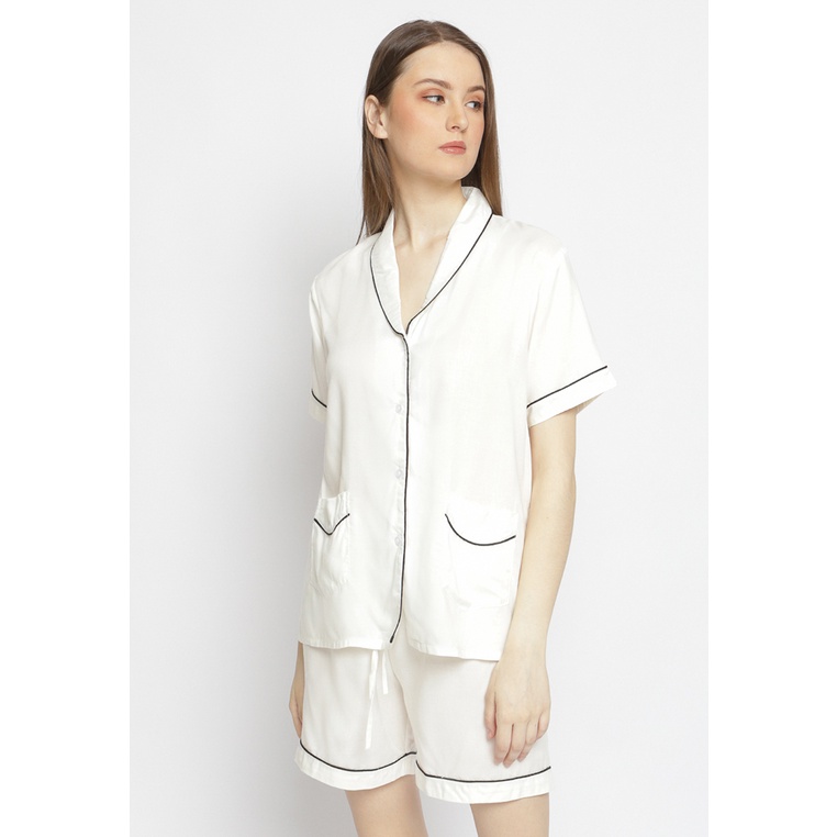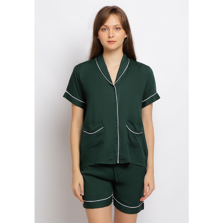 Blues & Blush Piyama Set Rayon Bumil Busui Friendly Motif Wanita Meg Lengan Pendek Celana Pendek