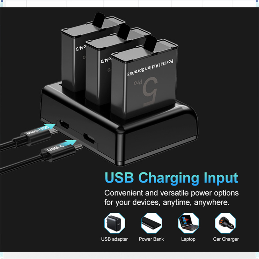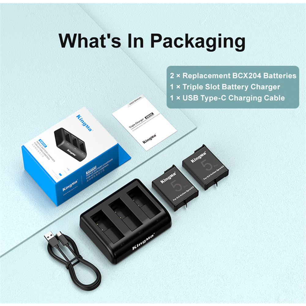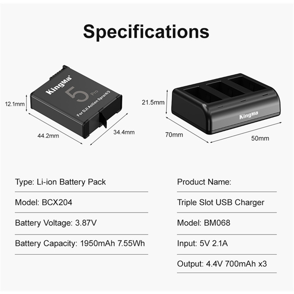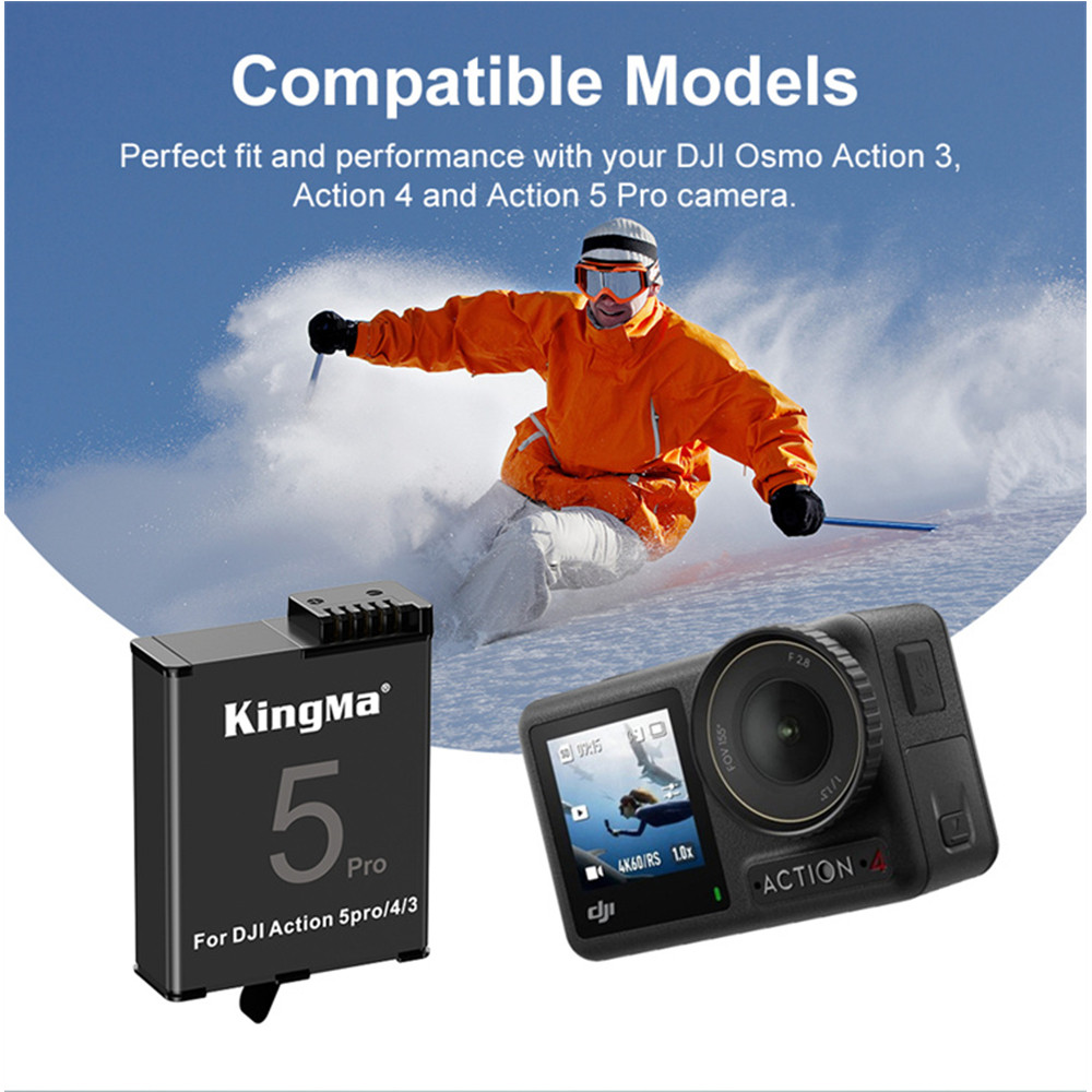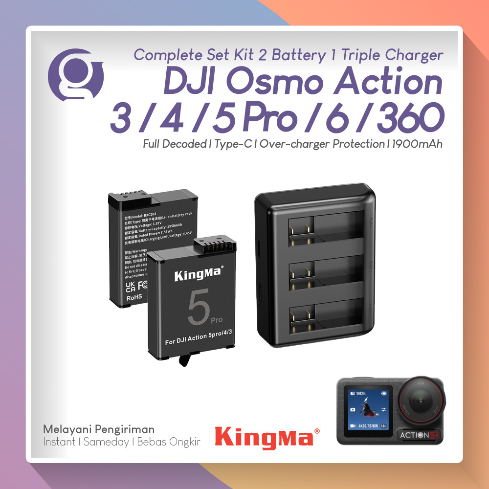 KingMa Paket Complete Baterai for DJI Action 6 5 Pro 4 3 / 360 with Triple Charger Set untuk DJI OSMO ACTION3 ACTION4 ACTION5 PRO ACTION6 / 360
