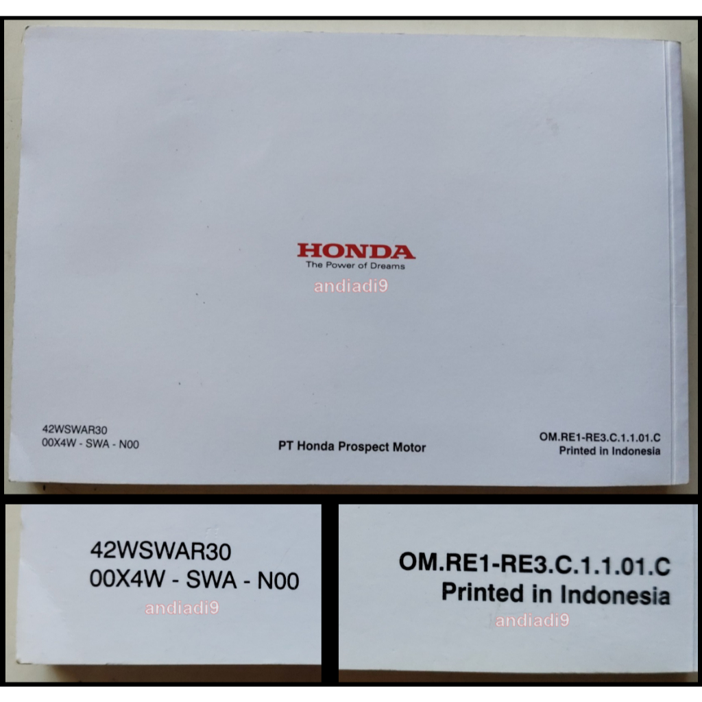 BUKU PANDUAN PEDOMAN PEMILIK HONDA CR-V ORIGINAL ASLI