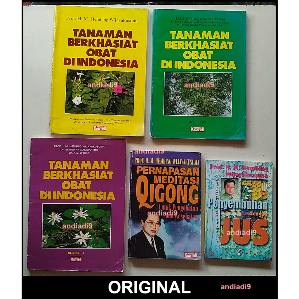 BUKU TANAMAN BERKHASIAT OBAT DI INDONESIA JILID 1, 2, 4 PERNAPASAN MEDITASI QIGONG UNTUK PENGOBATAN DAN KESEHATAN PENYEMBUHAN DENGAN JUS PROF. DR. H.M. HEMBING WIJAYAKUSUMA ORIGINAL ASLI