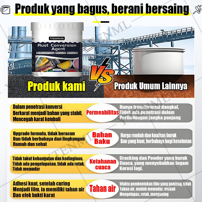 Tahan karat 30 tahun 1000g Cat penghilang karat Kirim alat Anti Rust Paint for Metal Quick Drying Rust Remover Rust Converter for Rusty Metal Steel Stair Railings Rusty Color steel tile