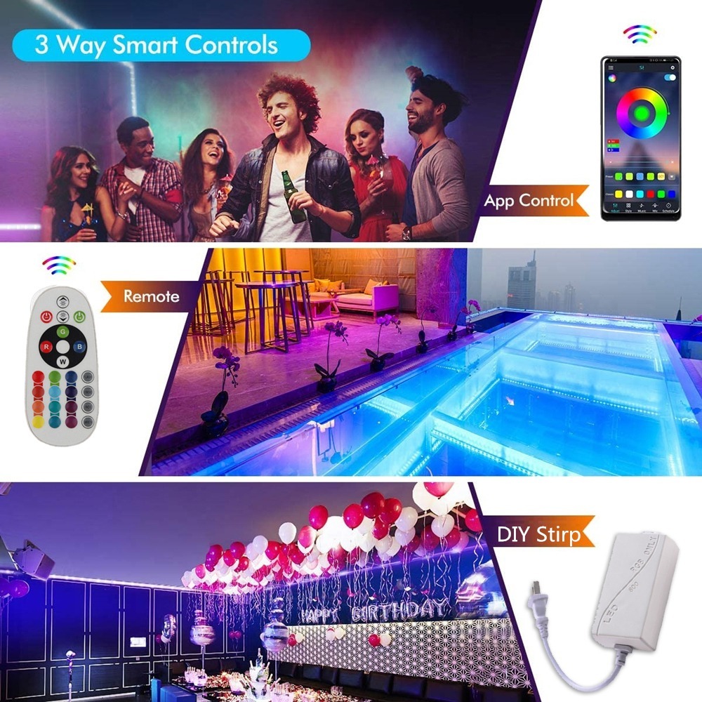 QIMEDO Lampu LED Strip 30 Meter Tahan Air Bluetooth Remote Drop Ceiling Plafon