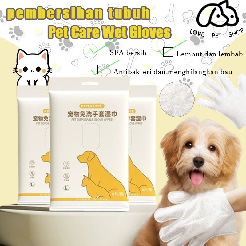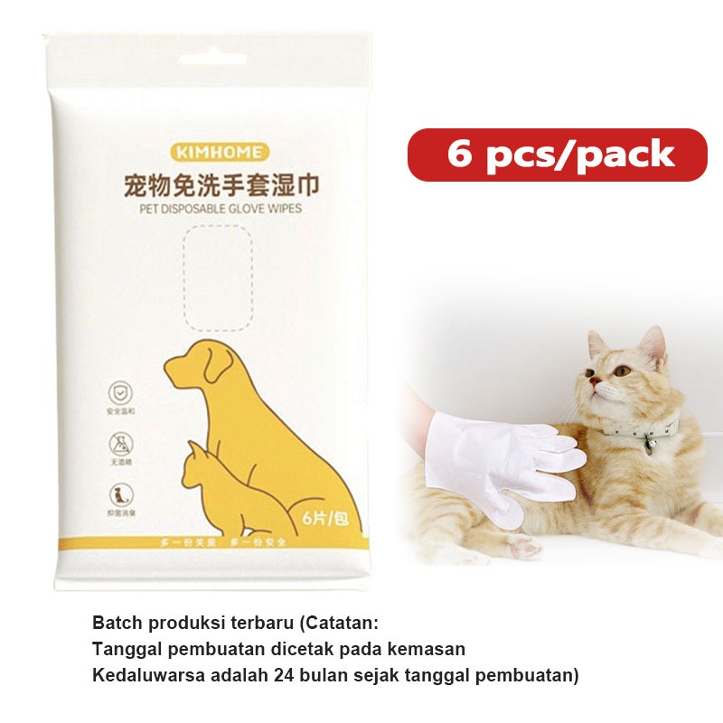 Tisu Basah Kucing Anjing/pembersihan tubuhPet Care Wet Gloves/6Pcs 1Pack Pet Disposable Wipes Gloves
