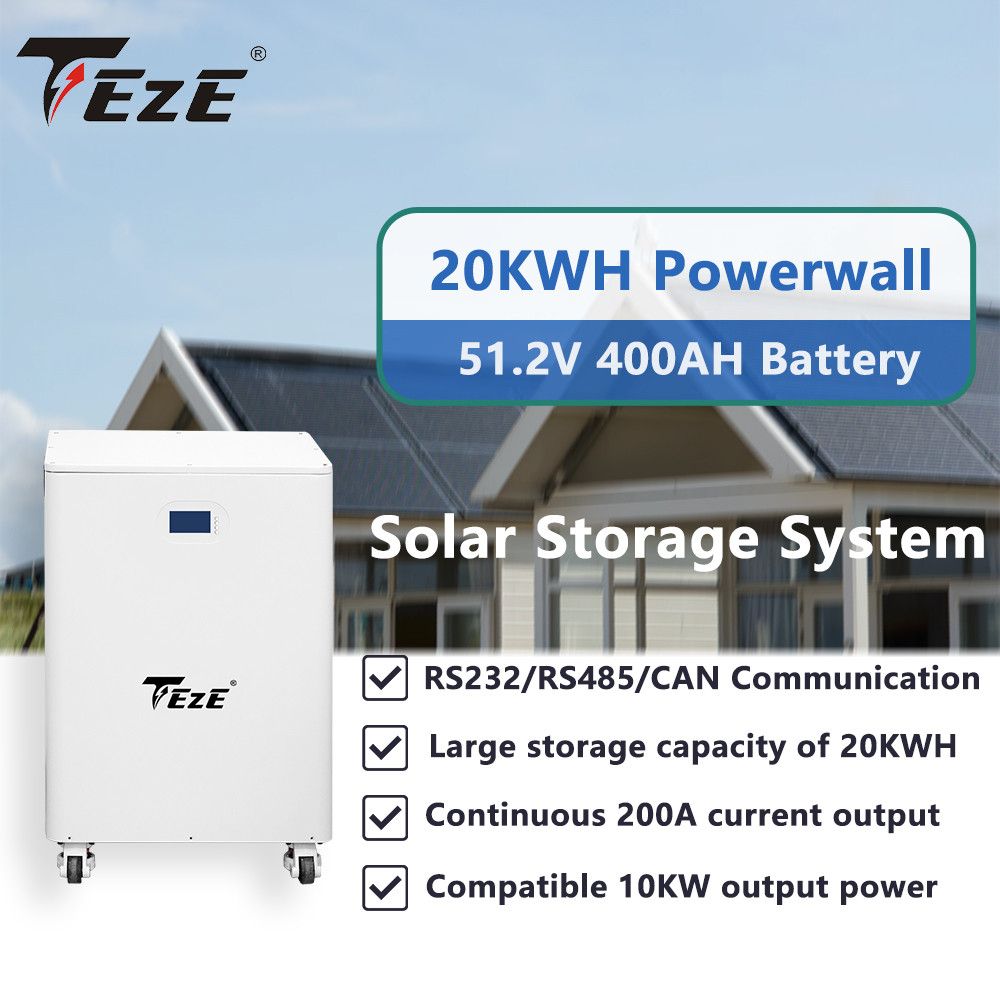 TEZE 20KWh LiFePO4 Battery 51.2V 400Ah Powerwall Built-in BMS 6000 Cycles 10KW Output Home Solar Storage EU Tax Free