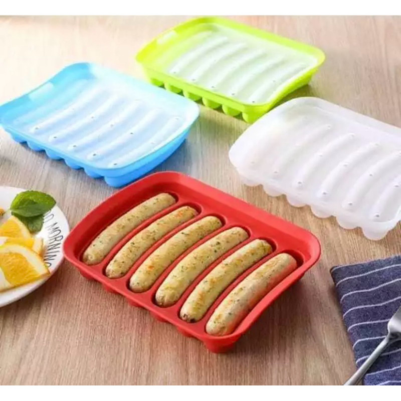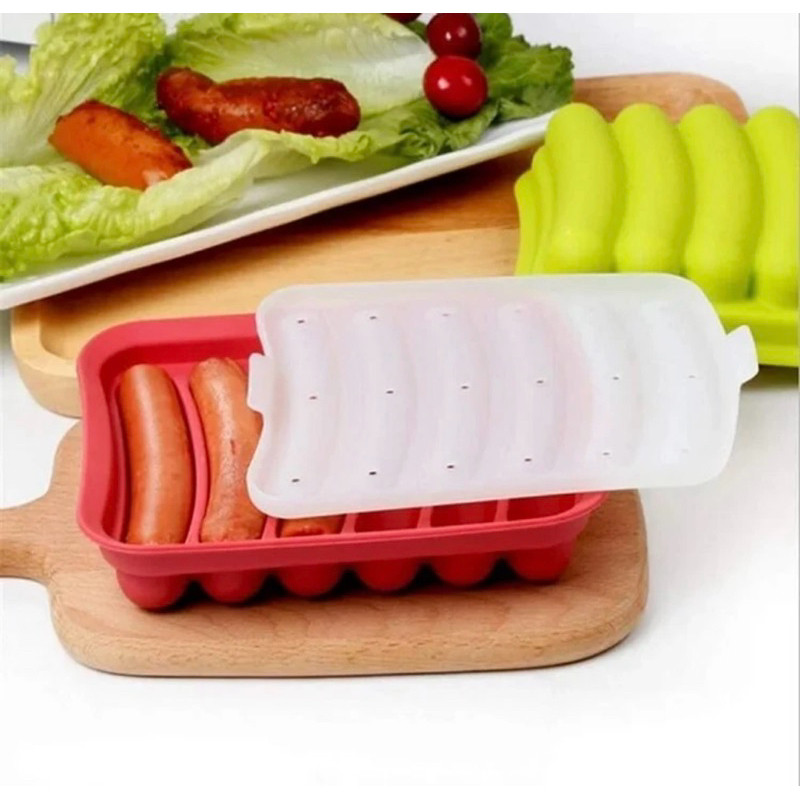 Cetakan Sosis Silikon Dengan Tutup Cetekan Nugget Naget Kukus Silikon Hotdog Kue Telur Puding Es Silikon DIY 6 Lubang Sausage Silicone