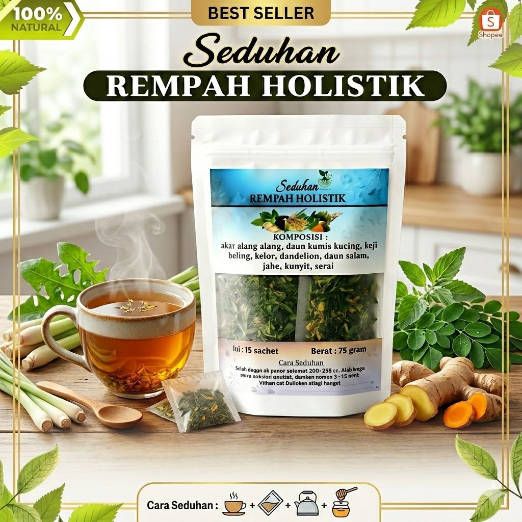 Ramuan Holistik Detox Ginjal - GINDETIC | Teh Akar Alang Alang Daun Kumis Kucing Tempuyung Keji Beling | Herbal Anyang Anyangan Kencing Berbusa Sakit Pinggang