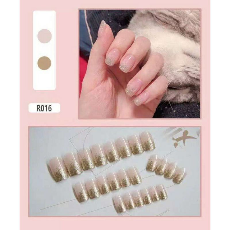Kuku Palsu isi 24 Gratis Lem cair + Gratis Sticker 24 pcs High Gloss Tahan Lama Bebas Alkohol Tanpa Pengharum Tahan air