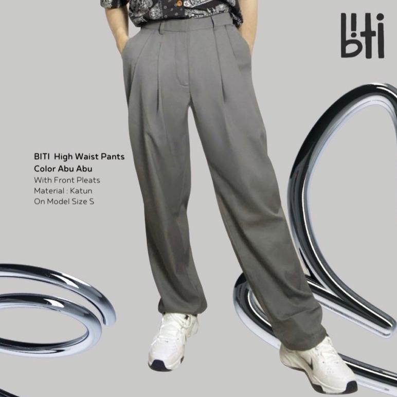 ORIGINAL BITI Celana Jaksel High Waist Pants | korean loose bahan katun longgar formal untuk kerja kuliah kantor casual pria cowok keren unisex panjang ankle biti22 - celana oversized wide leg pinggang karet bu-100