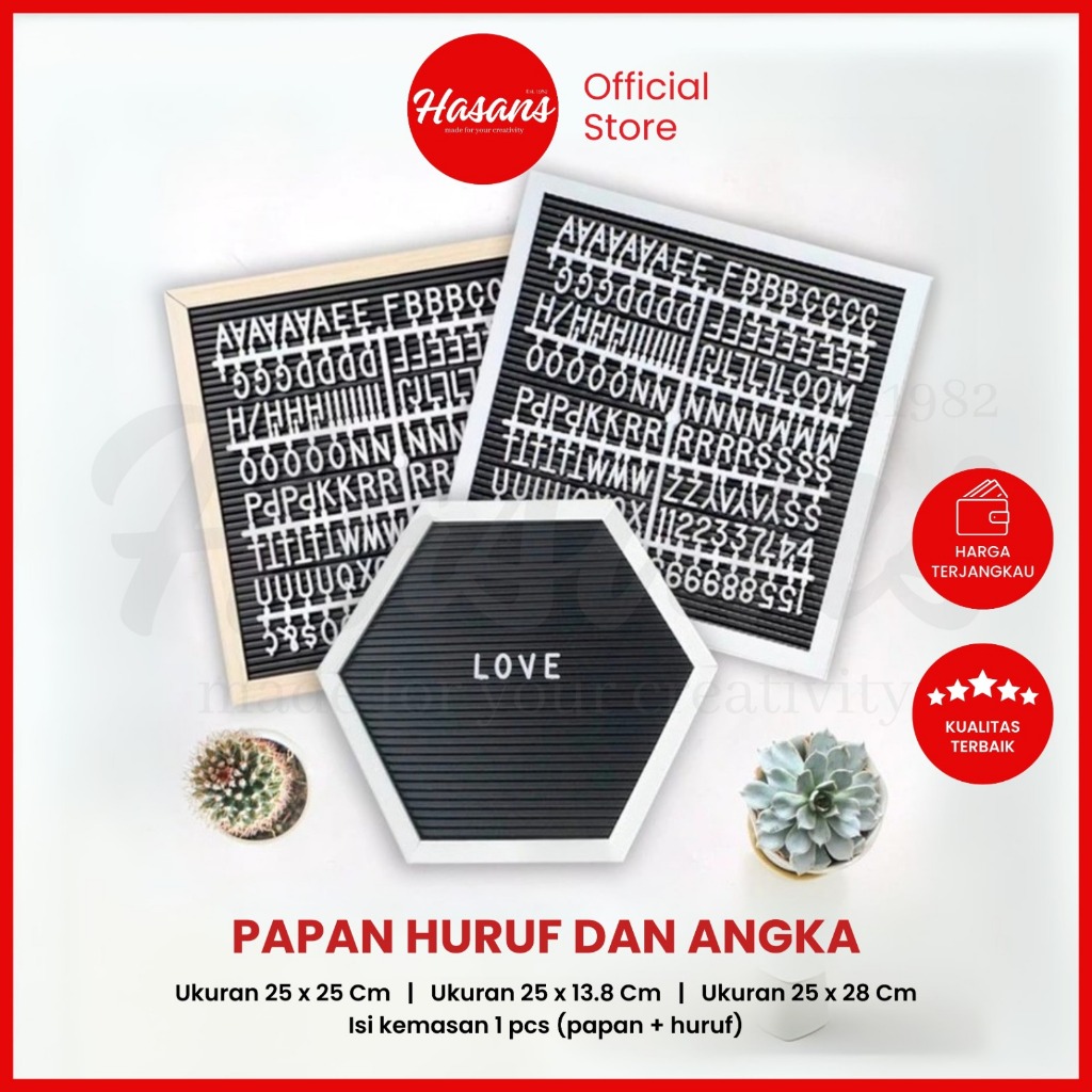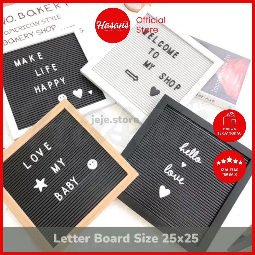 Hasans / [1 Pcs] Letter Board 25 x 25 / Letter Board 25.5 x 13.8 / Letter Board 25 x 28 / Papan Tulis Tempel / Papan Huruf & Angka Nama Bayi / Papan Huruf