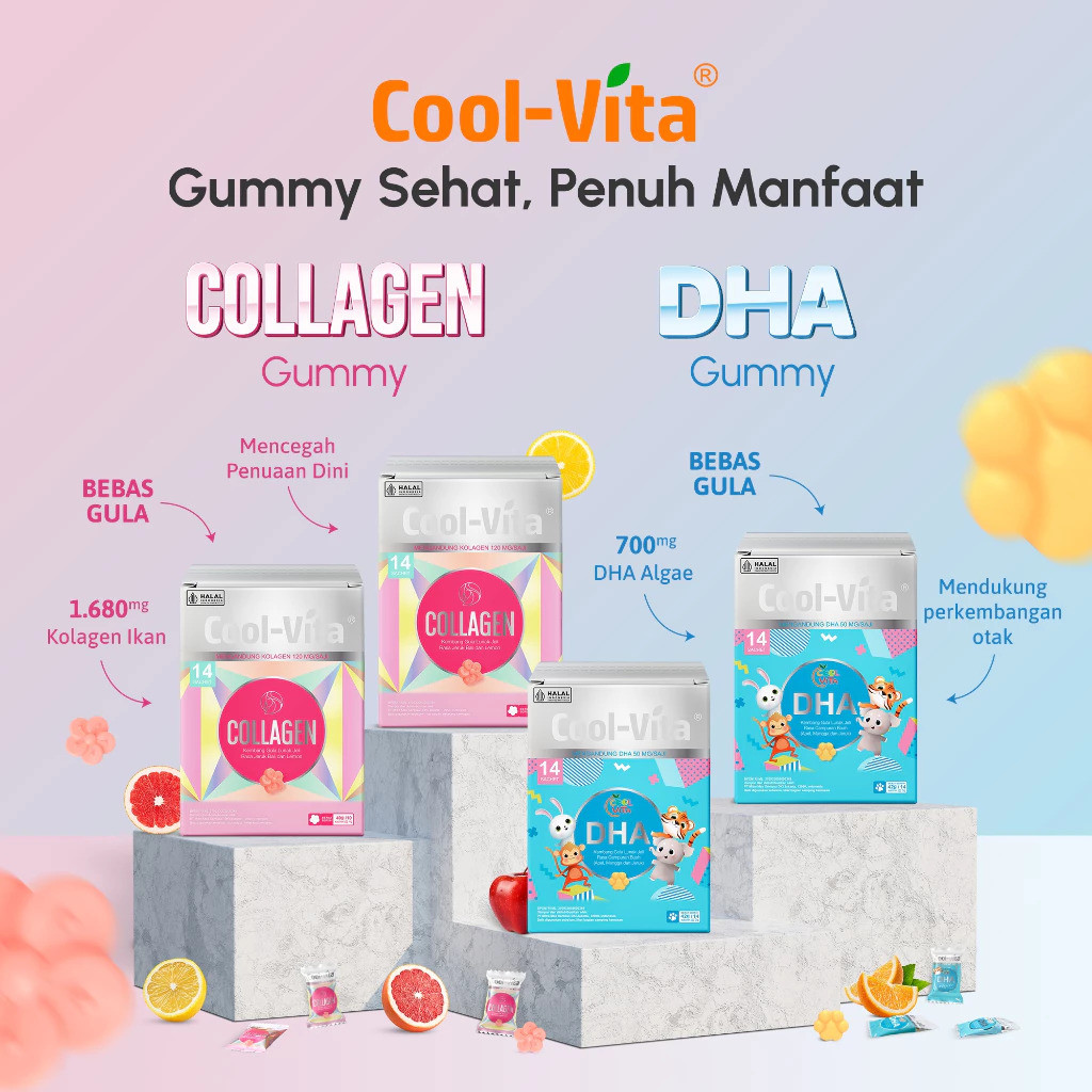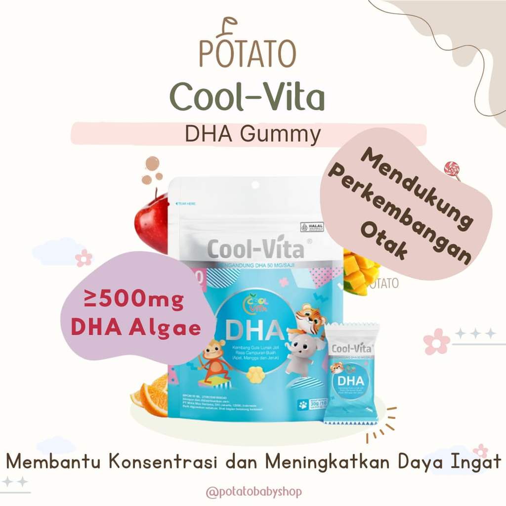 Cool-Vita 1 Pouch DHA Gummy Rasa Apel, Mangga, dan Jeruk | Untuk si Kecil yang Aktif | Suplemen Kesehatan Otak