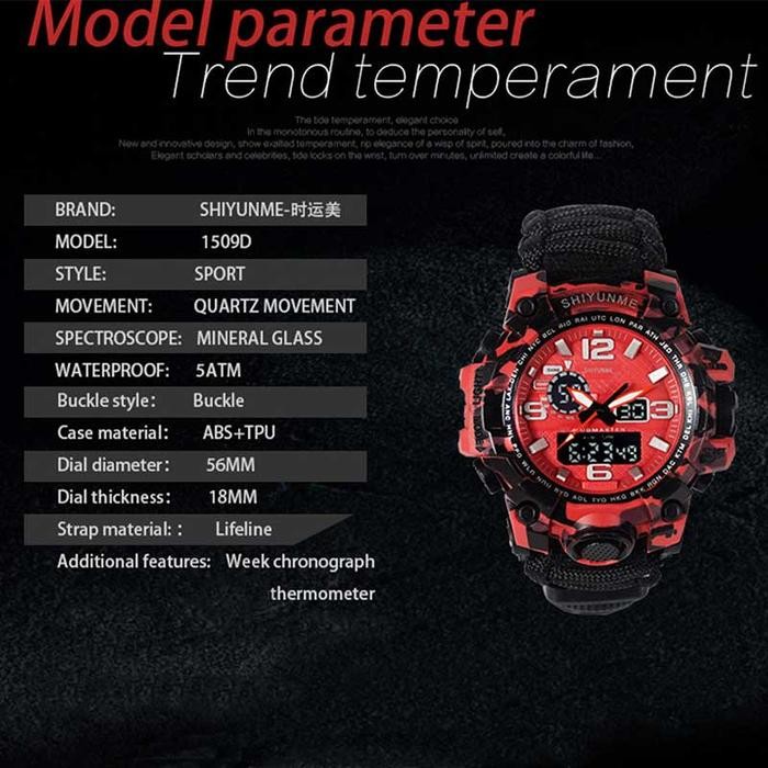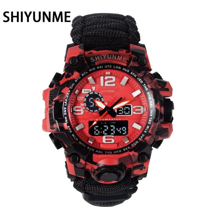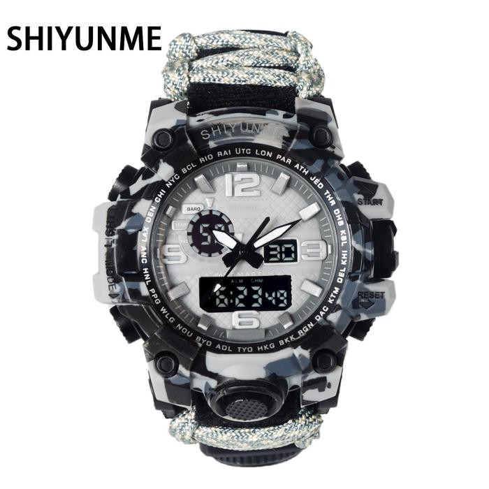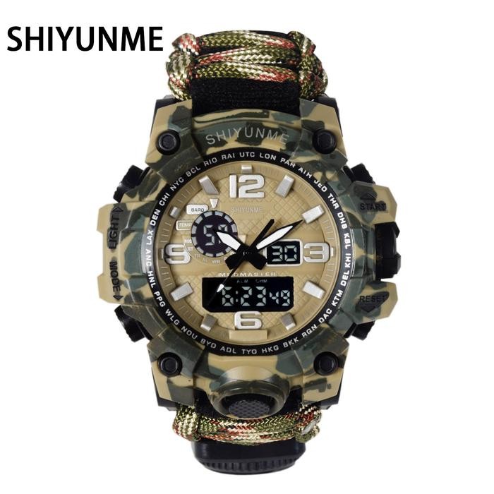 Shiyunme Jam Tangan Pria Multifungsi Tahan Air Taktis Militer Paracord Jam Tangan Kompas Termometer