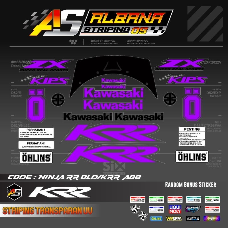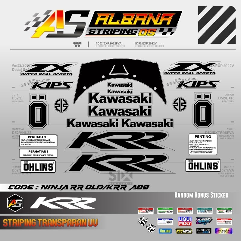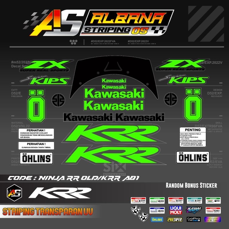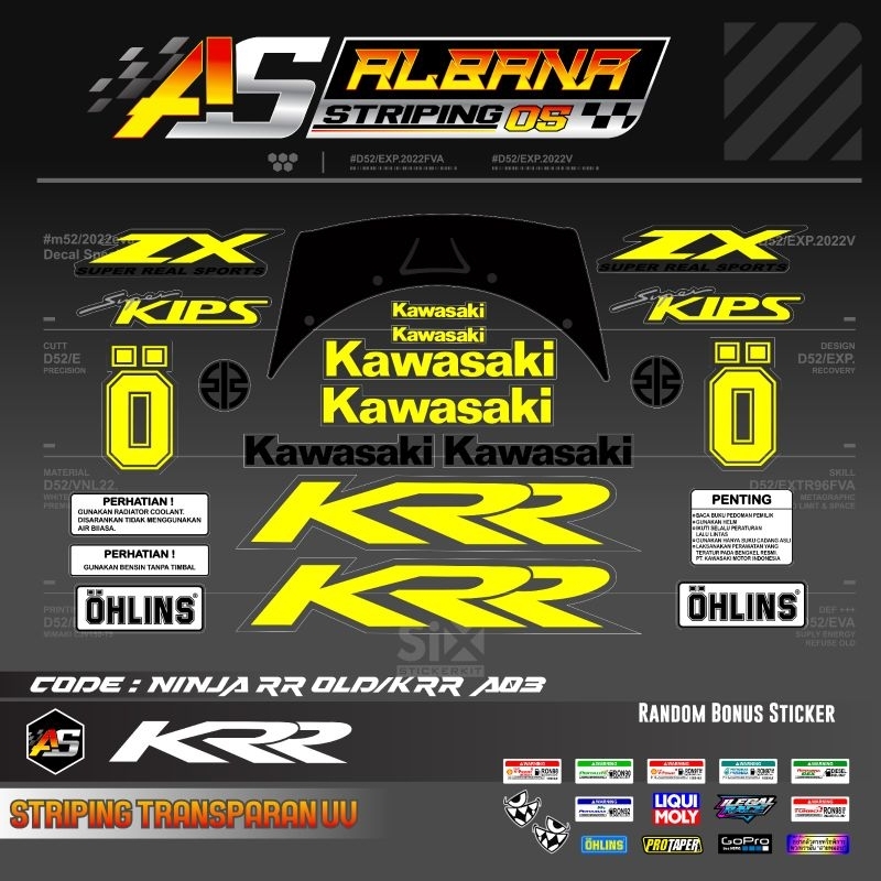 Striping stiker kawasaki ninja krr zx 150 cbu rr old transparan uv