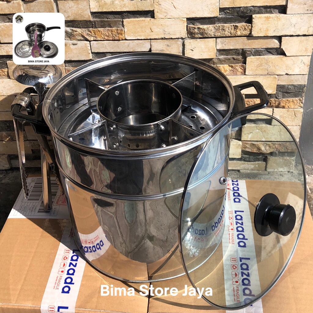 DANDANG BAKSO SEKAT 4 UKURAN JUMBO 26cm LENGKAP ADA CENTONG CAPITNYA , STAINLES TUTUP KACA PEGANGAN ANTI PANAS MURAH DI SHOPE