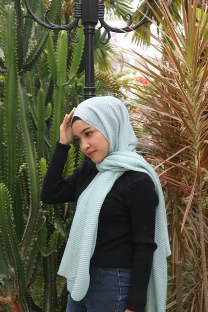 Pashmina wrinkle P282C rawis crinkle hijab plisket malaysia pleated shawl waffle import premium