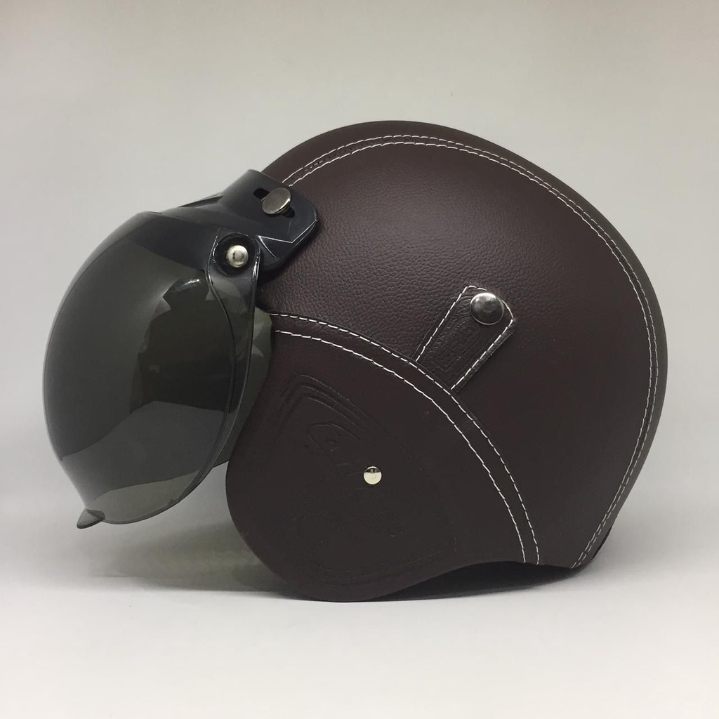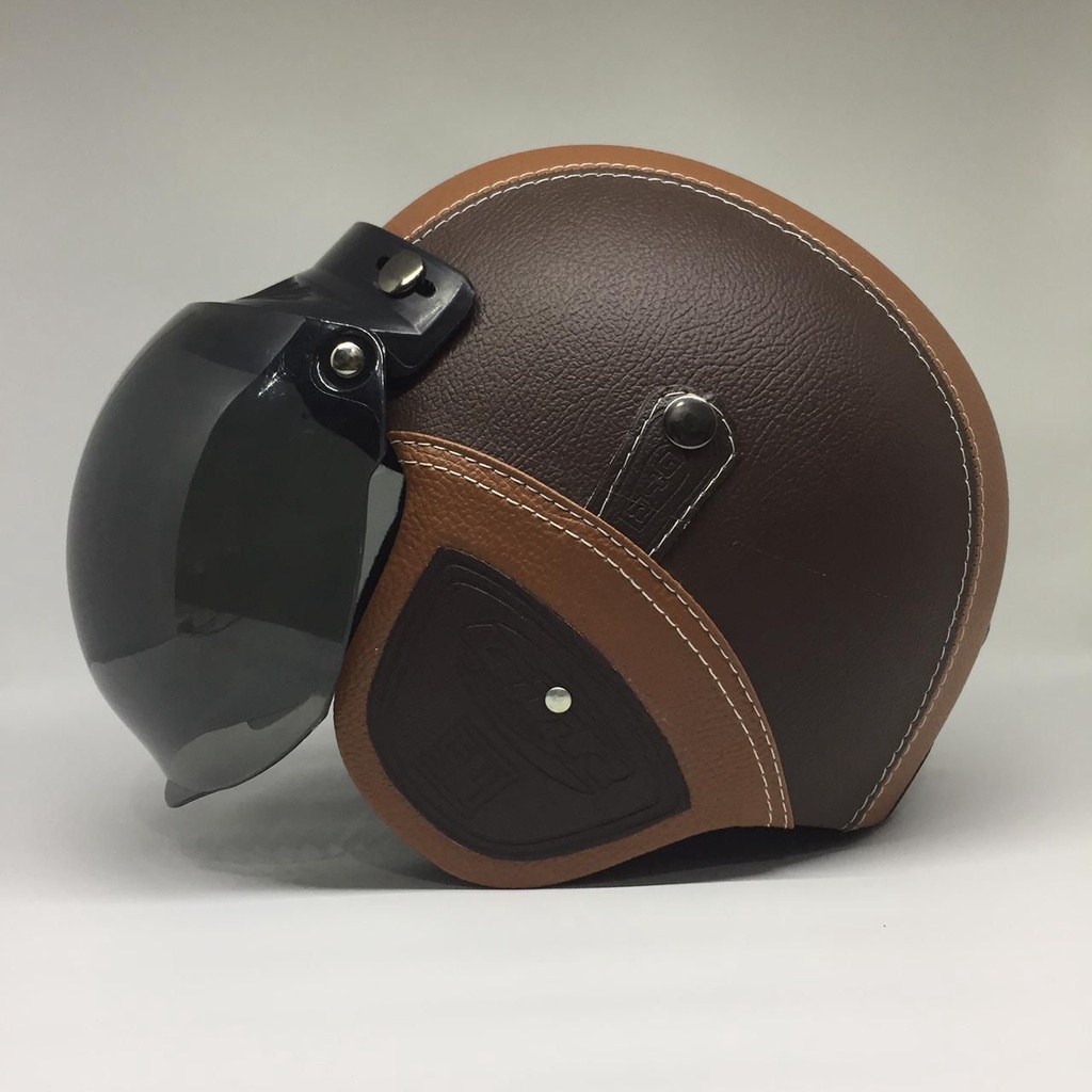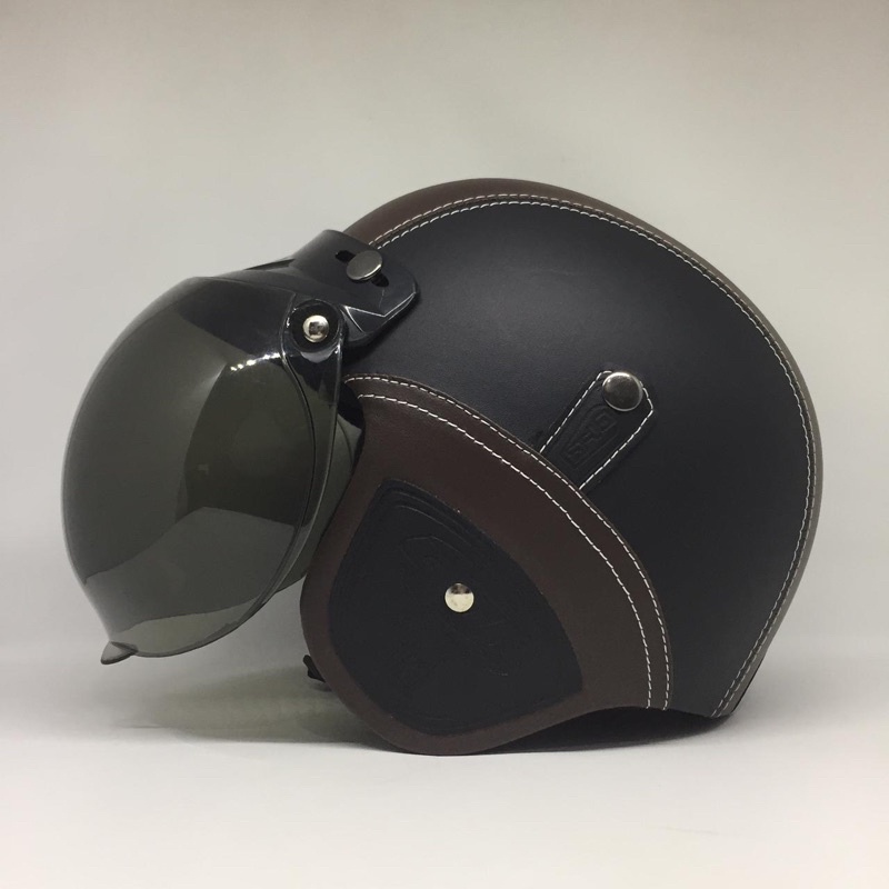 HELM RETRO Leono DEWASA FULL KULIT PLUS KACA CEMBUNG