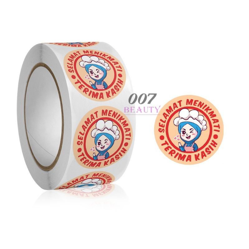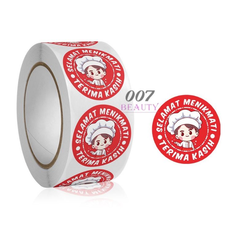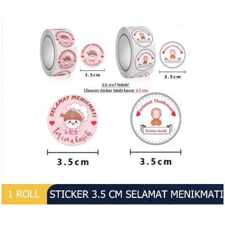 (1 ROLL ISI 500 PCS) PREMIUM ROLL STIKER 2,5CM / 3,5CM SELAMAT MENIKMATI - STICKER MAKANAN KUE THANK YOU