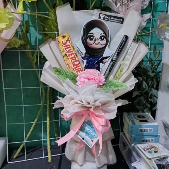 buket hari guru ATK dan coklat silverqueen hadiah teacher day