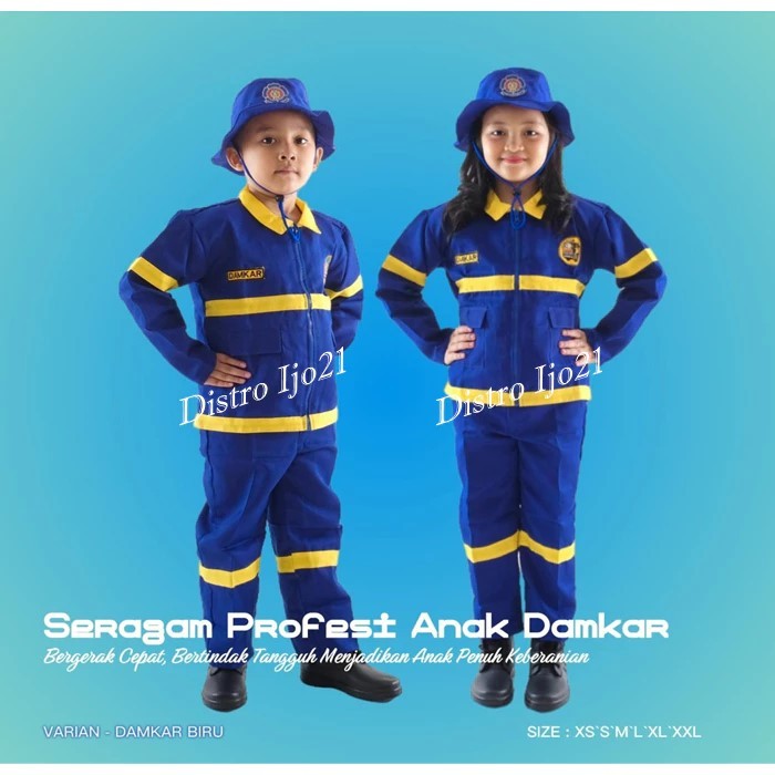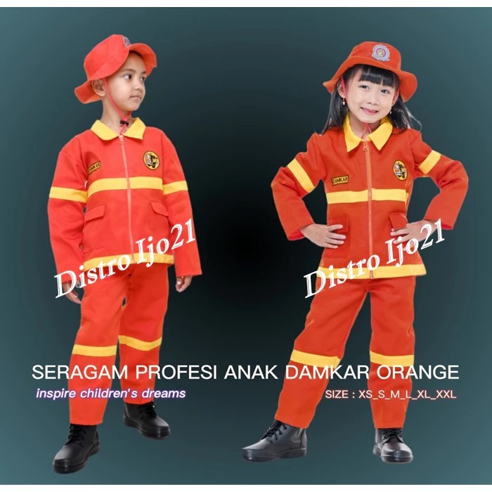 BAJU PROFESI ANAK DAMKAR/PEMADAM KEBAKARAN/BIRU/MERAH/ORANGE/SETELAN DAMKAR ANAK