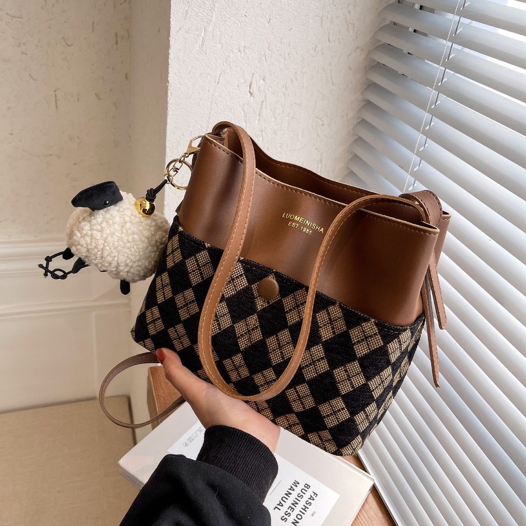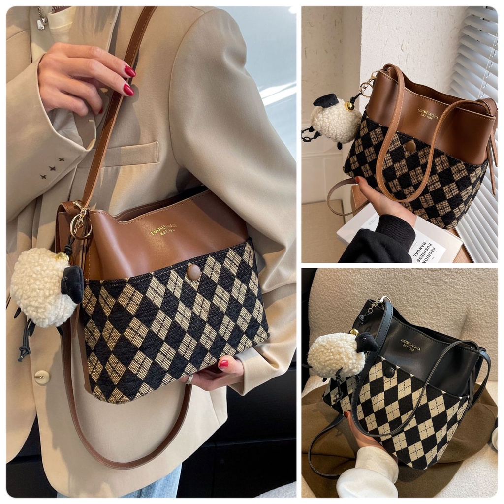 TAS LUOMEINISHA 2 TALI FREE GANTUNGAN IMPORT MURAH Tas Selempang & Bahu Wanita Import Murah Tas Import Wanita Perempuan Cewek Tas Fashion Bucket Hobo Ling Tas Korea Cantik Modis Keren Trendy Terbaru Elegant Kekinian 8425I