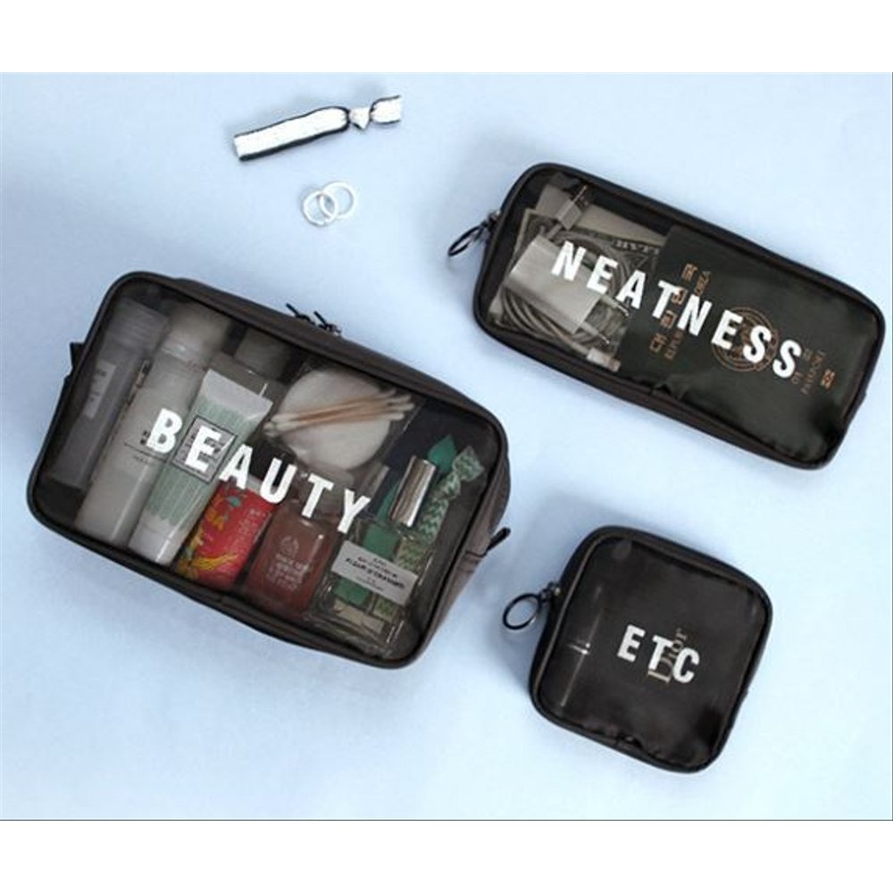 Travel Pouch Jaring Size L Tas Kosmetik Elektronik Alat Mandi Handphone Earphone Obat Multifungsi -