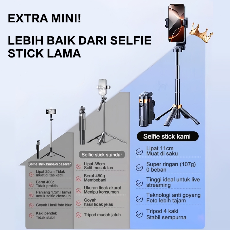 Tongsis konten kreator otomatis Tongsis Tripod Mini Handphone Bluetooth Remote tongsis hp multifungsi 360° Rotasi Holder HP Tripod Konten Kreator Anti Goyang Selfie Stick