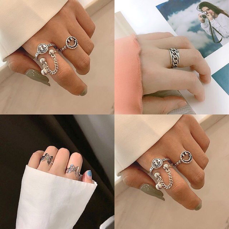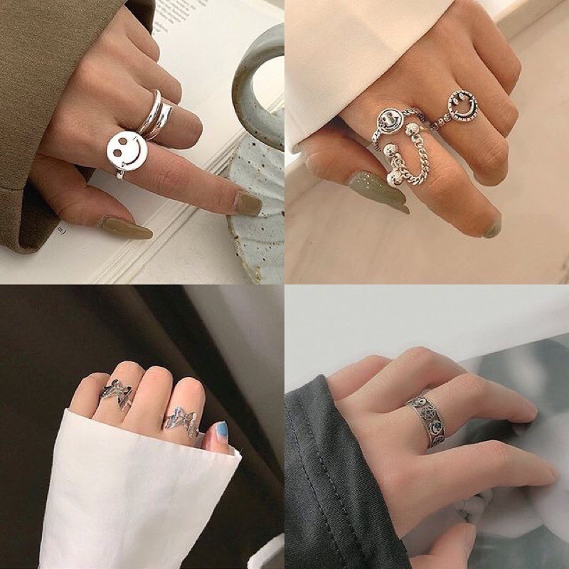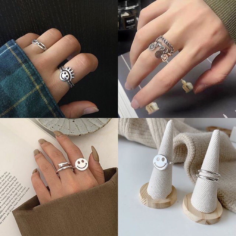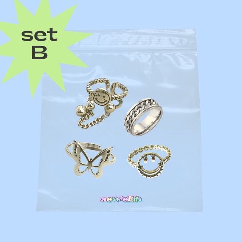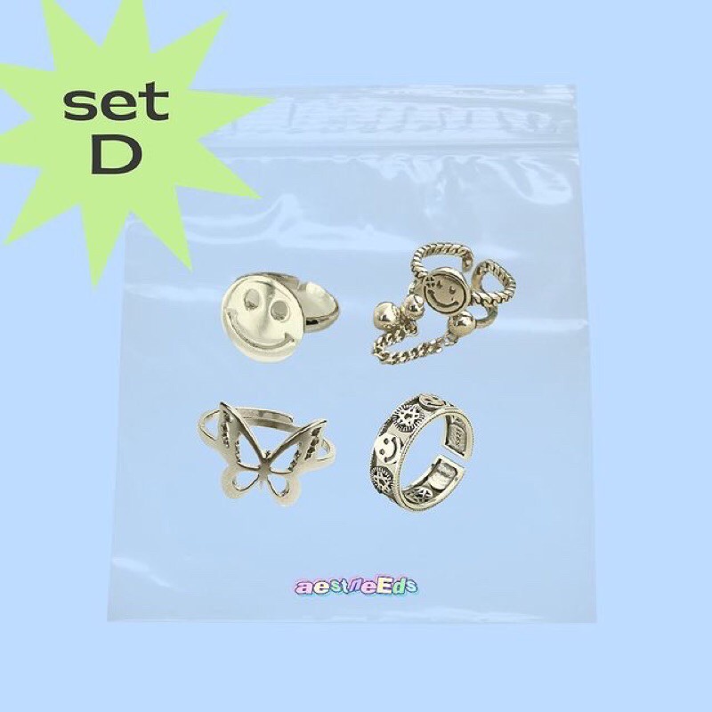 RINGS PACKAGE AESTNEEDS Set Cincin Aesthetic Korea Smiley Rings Pria Wanita Adjustable