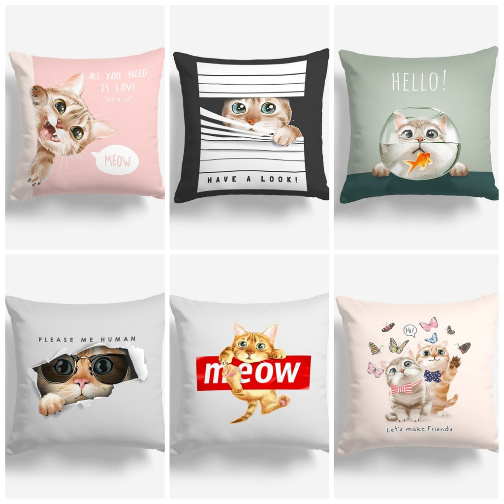 Bantal Sofa – Kucing Lucu / Cute Cat / Kitty Lover Ukuran 40x40 cm