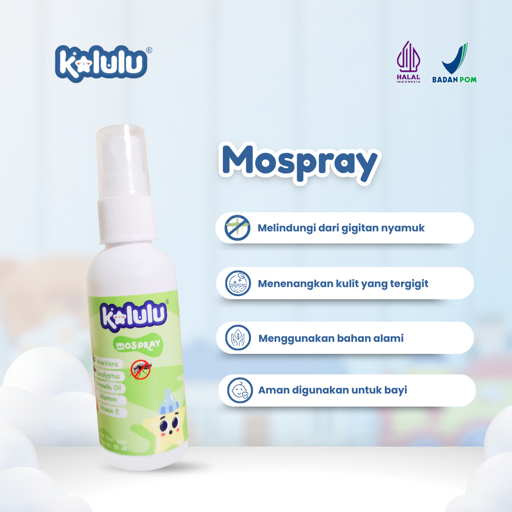 Kalulu Mospray 55 ml - Spray Anti Nyamuk Bayi dengan Citronella & Eucalyptus - Menjaga Dari Gigitan Nyamuk
