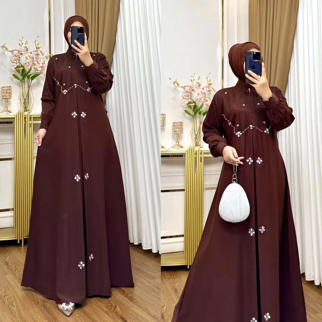 Amira Mahogany Dress Muslim Wanita Pesta Kondangan Brukat Payet Gamis Mewah Remaja Dewasa Gaun Maxi Modern
