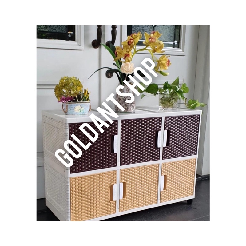Lemari Plastik Serbaguna Susun 2 Rak Sideboard Plastik Minimalis