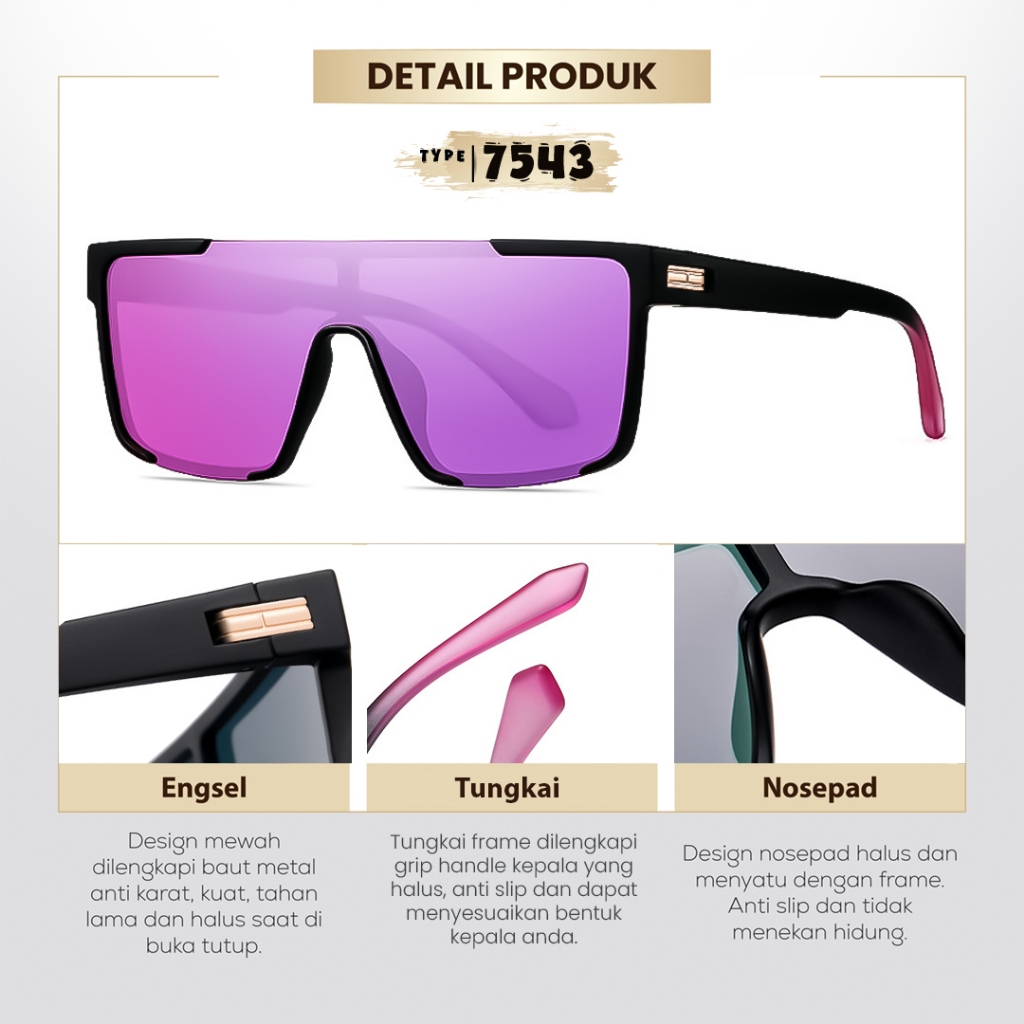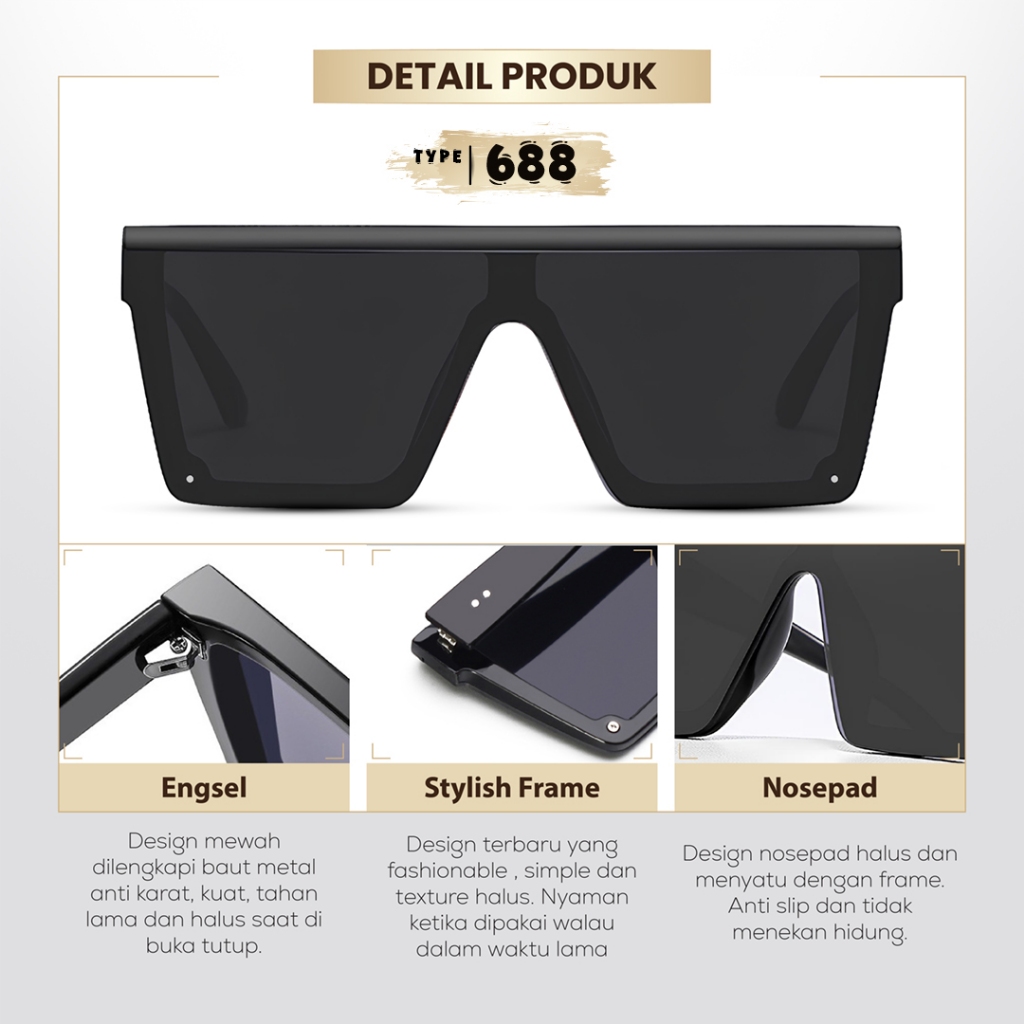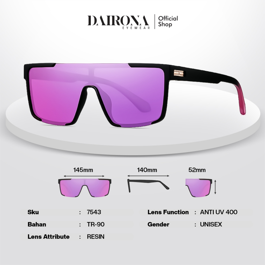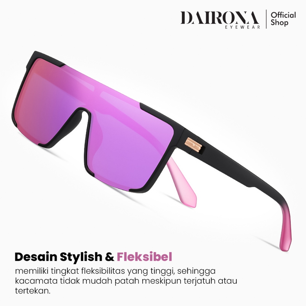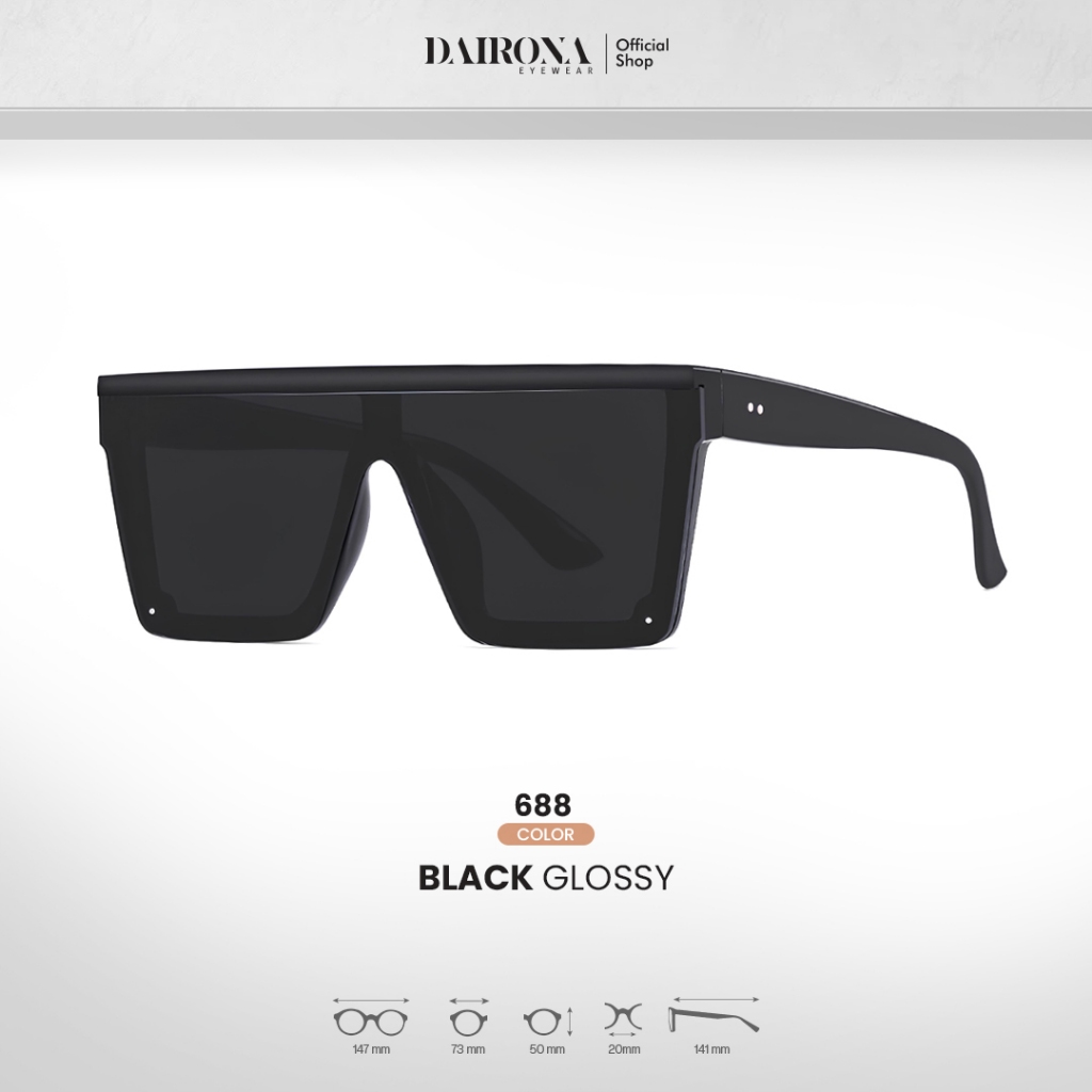 Dairona Eyewear Kacamata Hitam Anti Silau UV400 Polarized Sunglasses Gaya Korea Pria Wanita Terbaru Bentuk Kotak Ukuran Besar PC 688-7543
