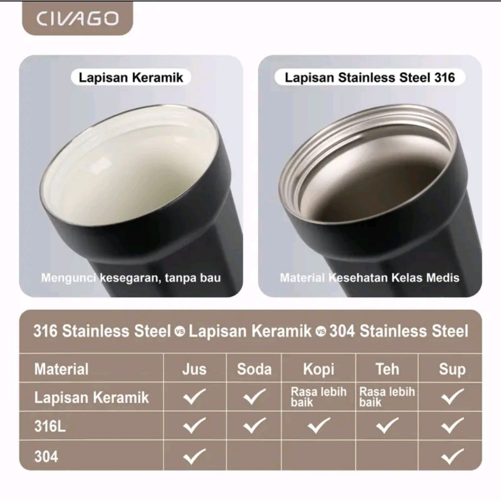 civago tumbler mug gelas tahan dingin 24 jam panas 12 jam