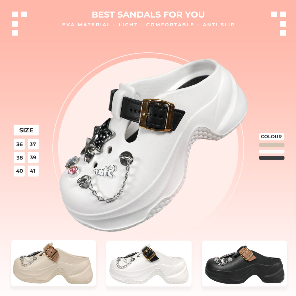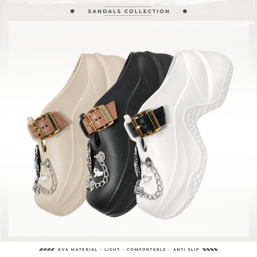 Sandal Skena Motif Rantai Rockstar Wanita 2508M-1 Sandal Baim Unisex Bahan Kare Premium