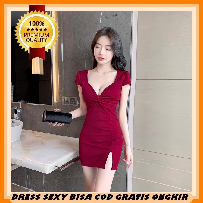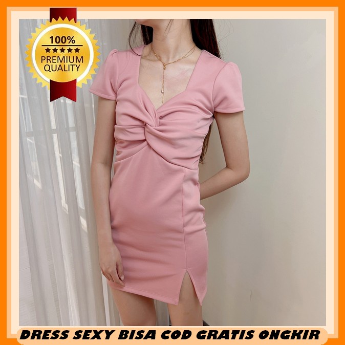 Baju Dugem Party Dreass Kondangan Elegan Dres Dewasa Terbaru 2023 Dress Wanita Kondangan Premium Dreas Untuk Party Pakaian Wanitaa Kekinian Korea Mini Dreas Murah Dress Korean Style Pendek Untuk Jalan Jalan Baju Atasan W Twist Knot Front Sexy Mini Dress