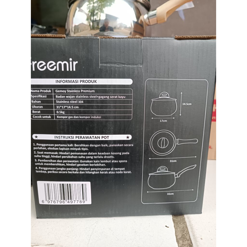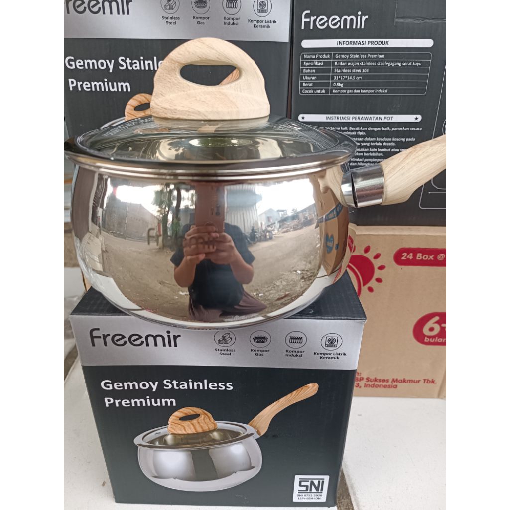 Panci Freemir Gemoy Stainless Steel 304 Premium SNI Ukuran 17cm Kompor Gas dan Kompor Induksi
