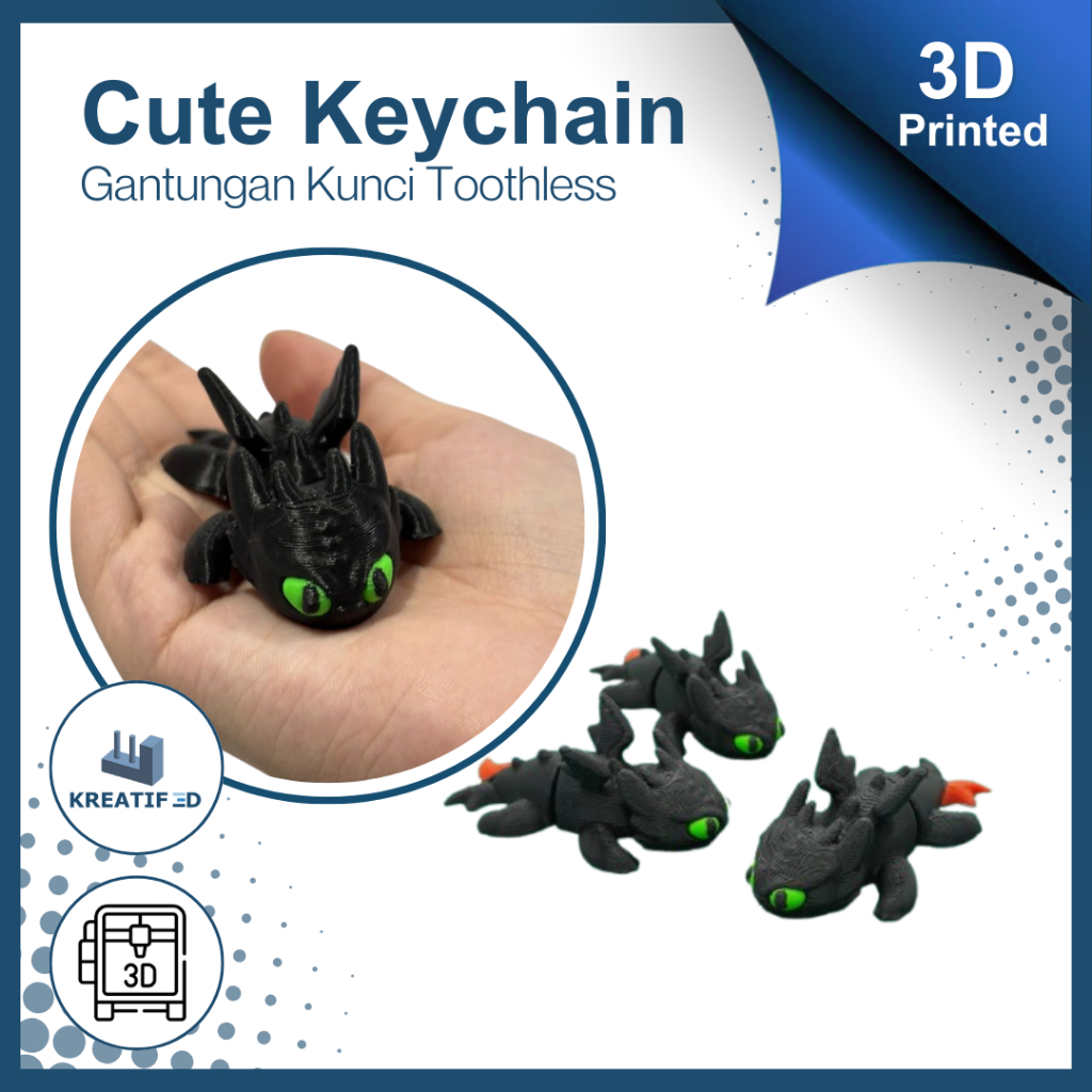 3D Print Articulated Toothless / Light Fury How To Train Your Dragon Flexi Keychain