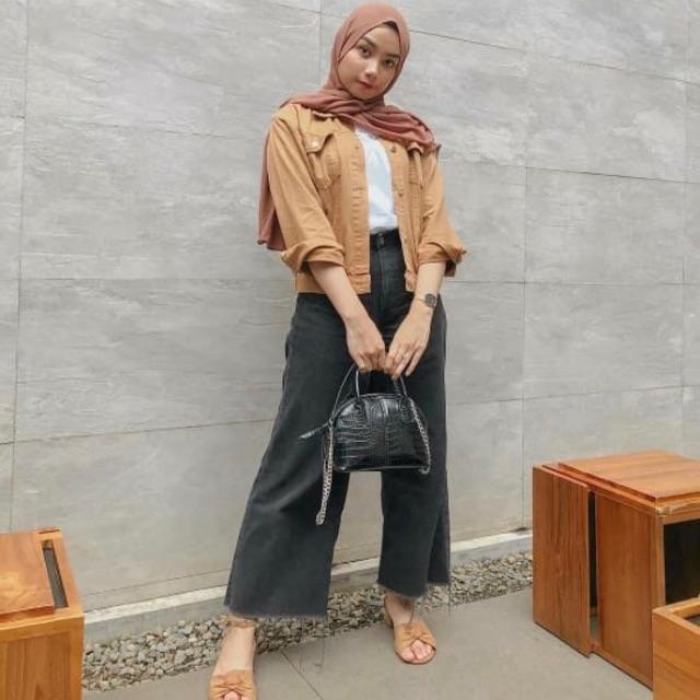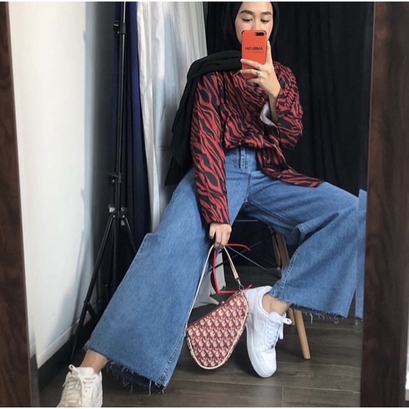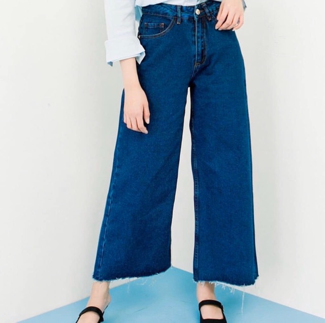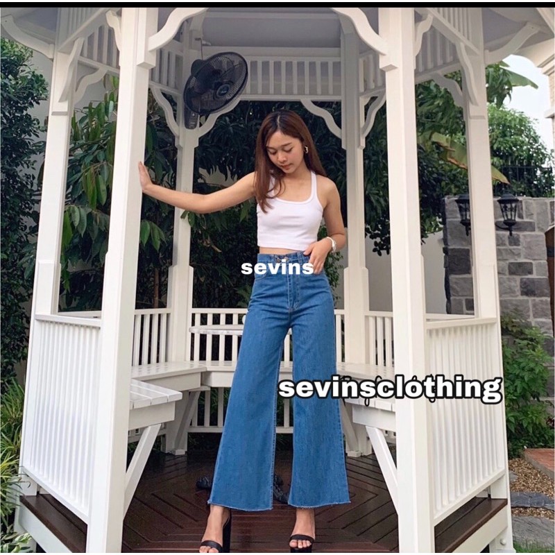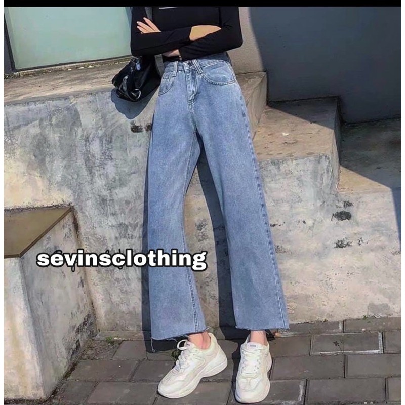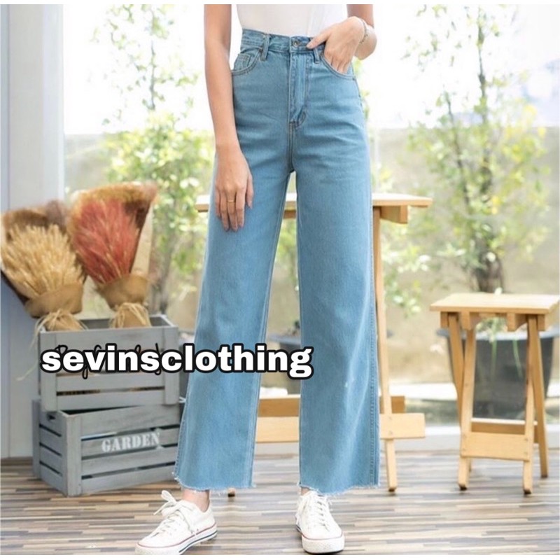 SEVINS - celana panjang highwaist Kulot jeans putih white denim unfinished/kulot jeans