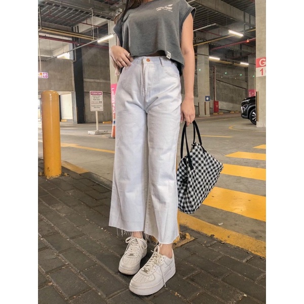 SEVINS - Kulot jeans unfinished putih/kulot wanita/kulot jeans/kulot jumbo