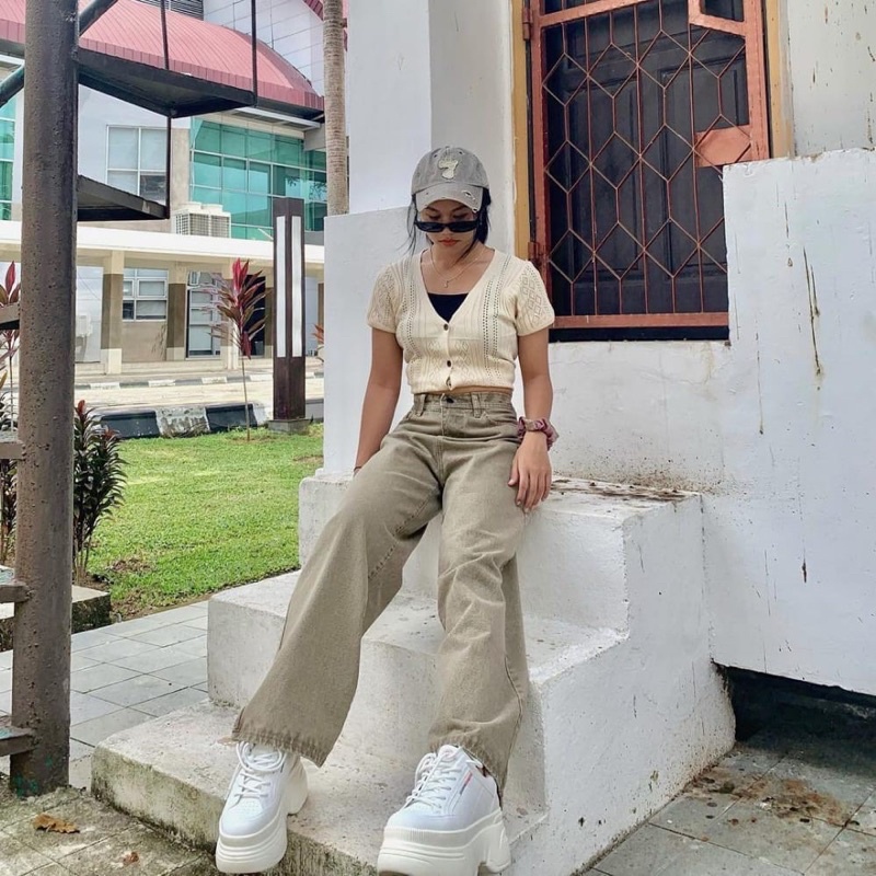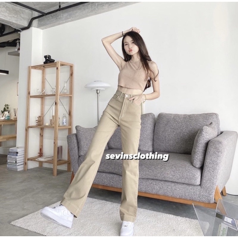 Sevins - celana panjang highwaist kulot jeans army coklat/kulot jeans wanita
