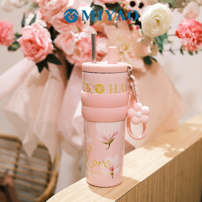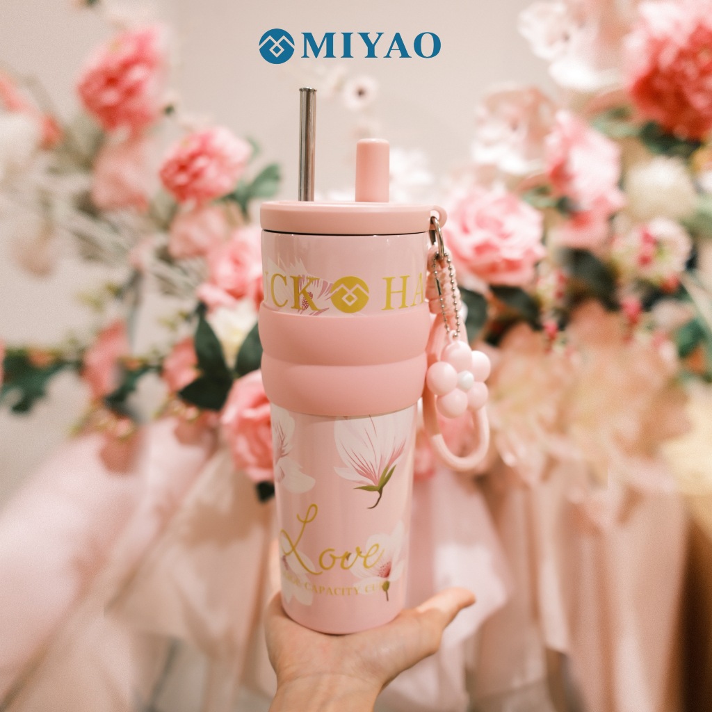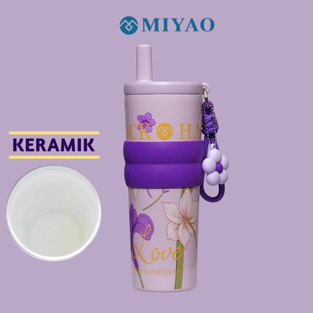 [COD] MIYAO Pink Tumbler 710ML Keramik Thermos SUS316 Stainless Portable Bottle Botol Pink Flower